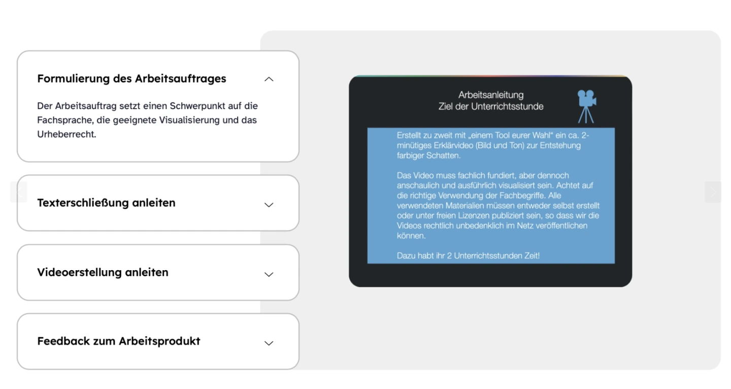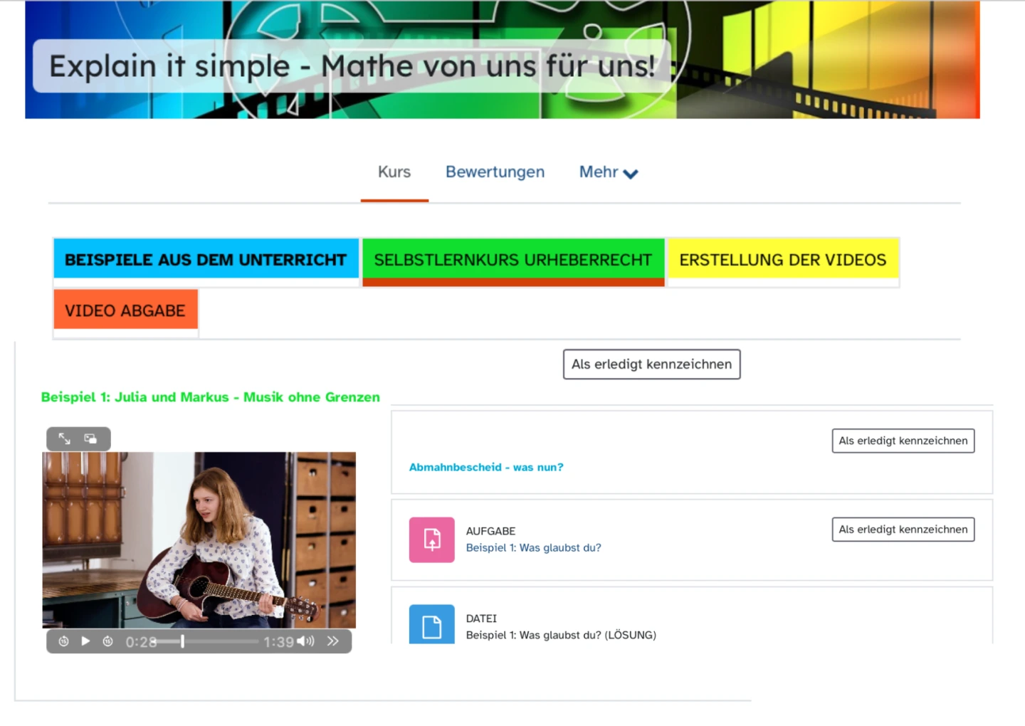 Im Rahmen der Erstellung von Erklärvideos wird vorher das Modul des Medienführerscheins eingesetzt, um vorher über Urheberrecht zu informieren. Hier: Integration eines Selbstlernkurses zu den Grundlagen des Urheberrechts im Unterrichtsverlauf -