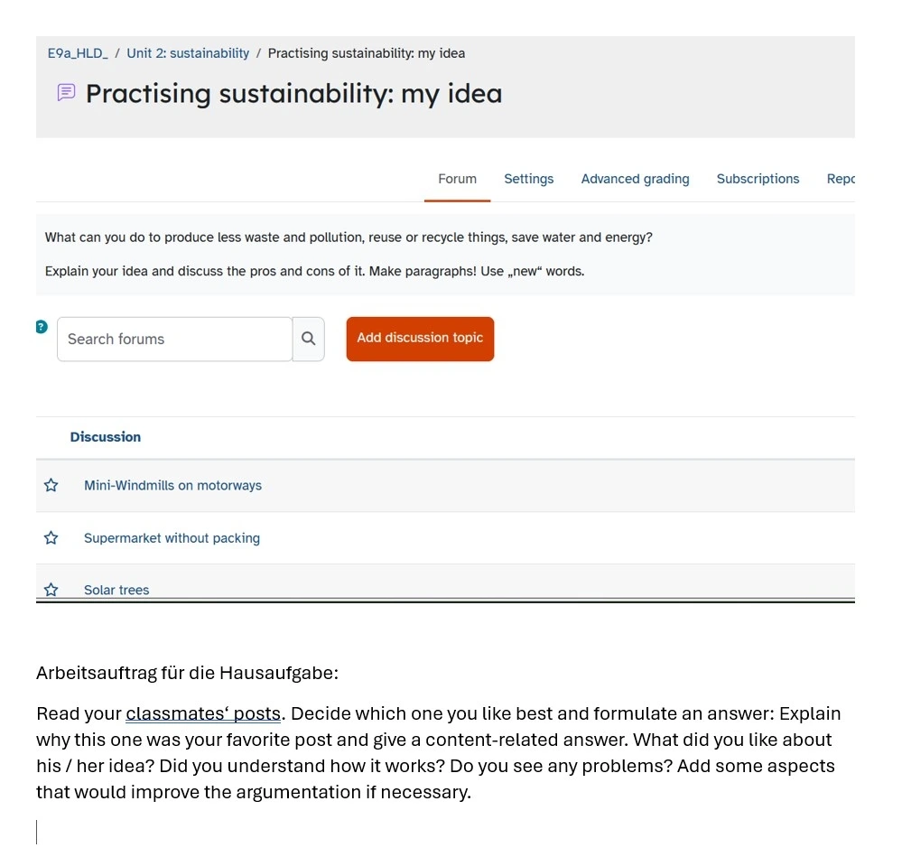 Im Forum formulieren die Lernenden direkt ihre eigene Meinung zu einem kontroversen Thema und kommentieren angemessen die Meinungen ihrer Mitschüler.