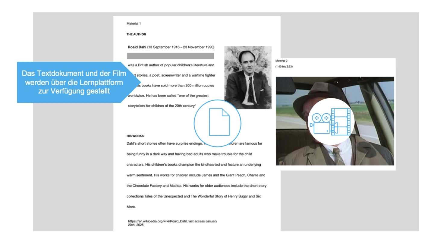 Kurzbiographie und Kurzüberblick Roald Dahl and his works zur ersten Einführung in das Thema; Material 1.