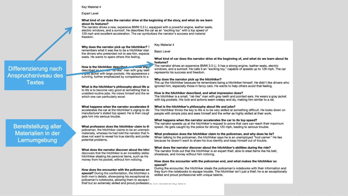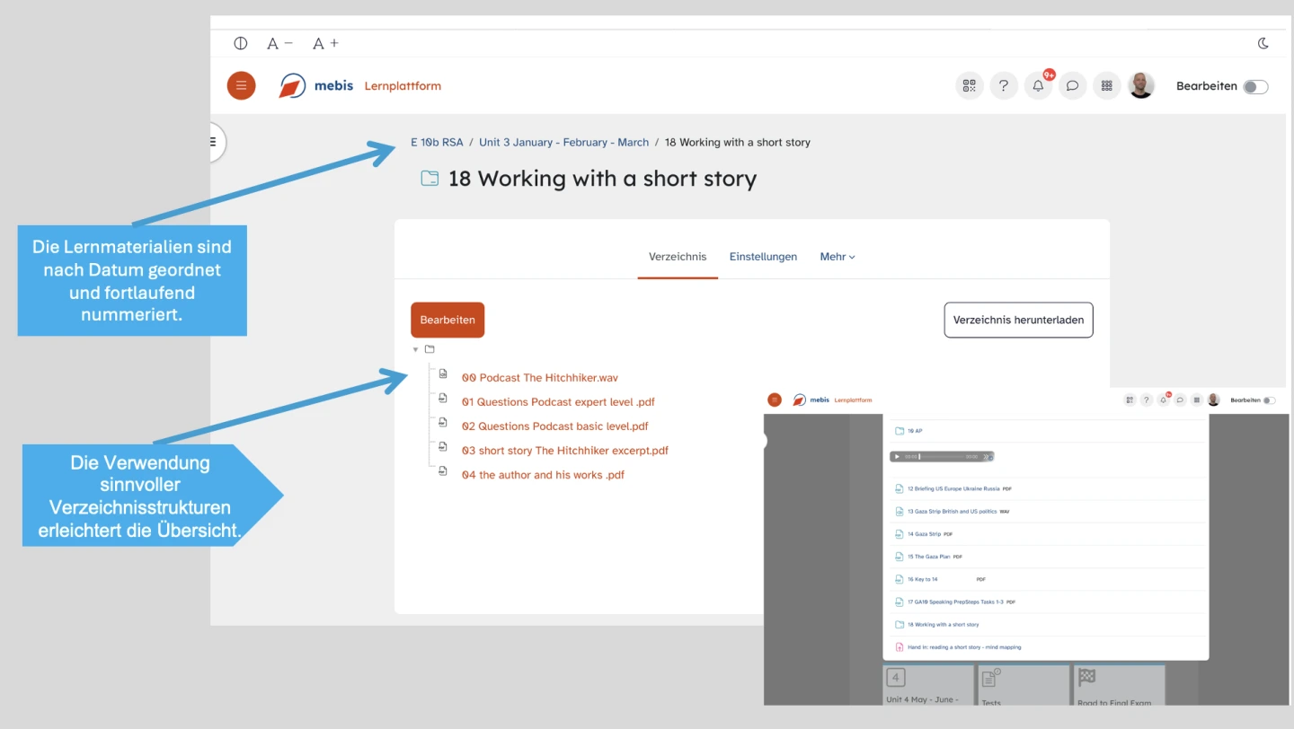 Materialbereitstellung über die Lernumgebung