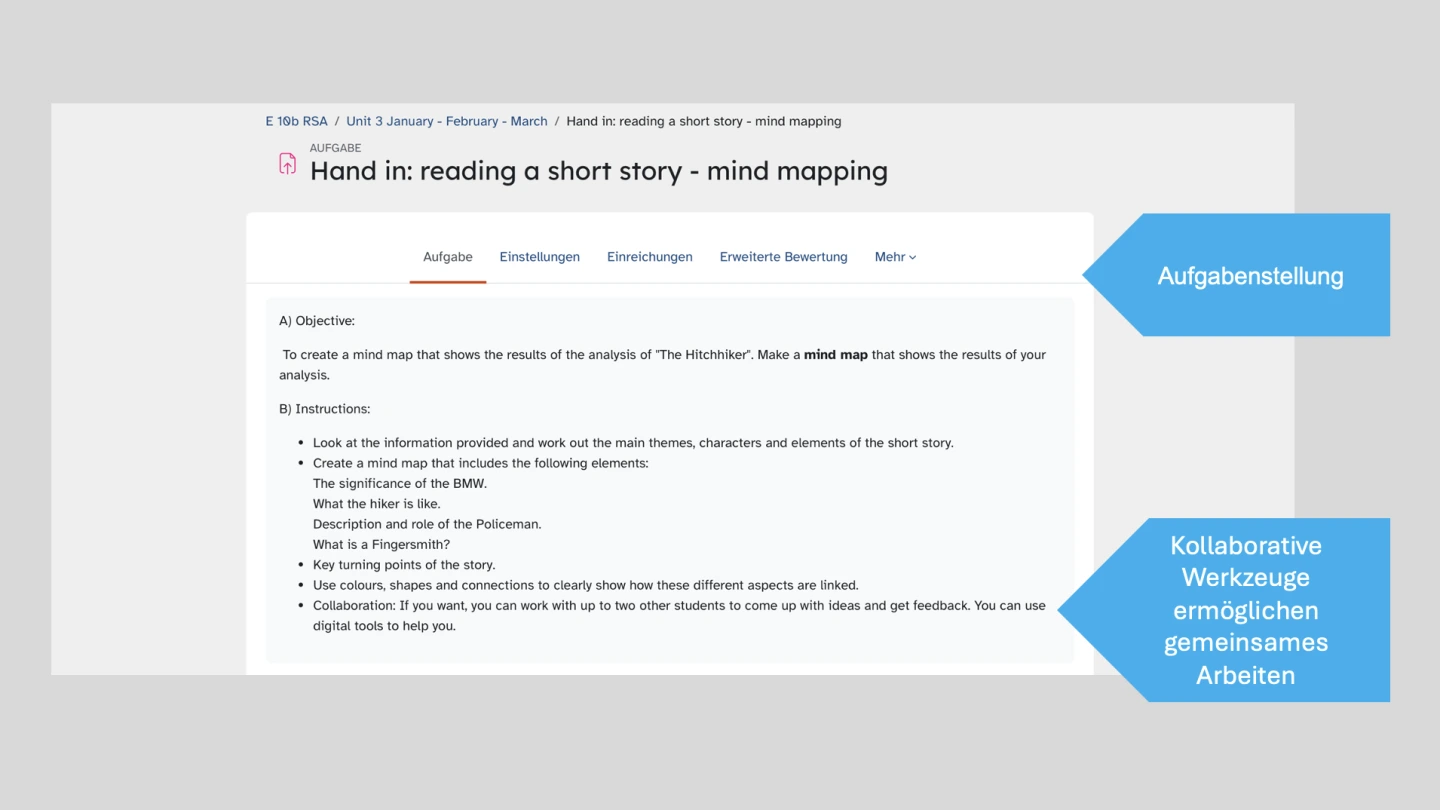 Im folgenden Unterrichtsbeispiel aus dem Englischunterricht wird gezeigt, wie der Wechsel zwischen digitalen und analogen Lernsettings den Unterricht bereichern kann. So werden die Materialien digital zur Verfügung gestellt und erleichtern individuelles und differenziertes Arbeiten mit Scaffolding-Angeboten. Zur Bearbeitung dürfen sowohl analoge als auch digitale Tools sowie kollaborative Werkzeuge verwendet werden. Die Diskussionen über die gewonnenen Erkenntnisse erfolgen hingegen in analoger Partnerarbeit, während die Ergebnisse digital eingereicht werden und asynchrones Feedback ermöglichen.