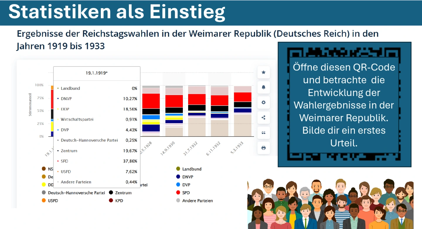 Der Einsatz von multimedialen Impulsen wie Bildern, Audios und Videos bereichert den Unterricht auf vielfältige Weise. So können multimediale Elemente (Audio, Bilder, Video, Statistiken, Karikaturen) beispielsweise als Einstieg in ein neues Thema dienen, indem sie sofortiges Interesse wecken und die Neugier der Schüler anregen. Zudem fördern sie das Textverständnis, indem sie Inhalte auf verschiedene Weisen präsentieren und es den Lernenden ermöglichen, Informationen besser zu verarbeiten und einzuordnen.