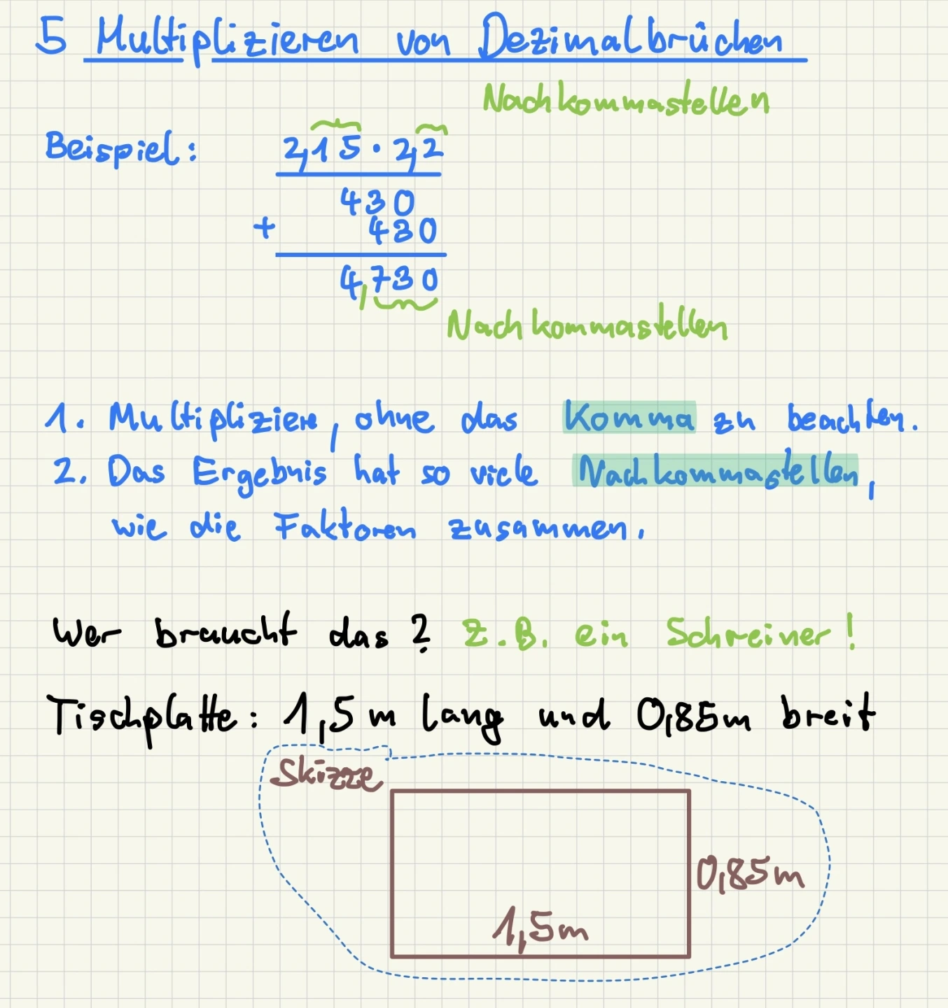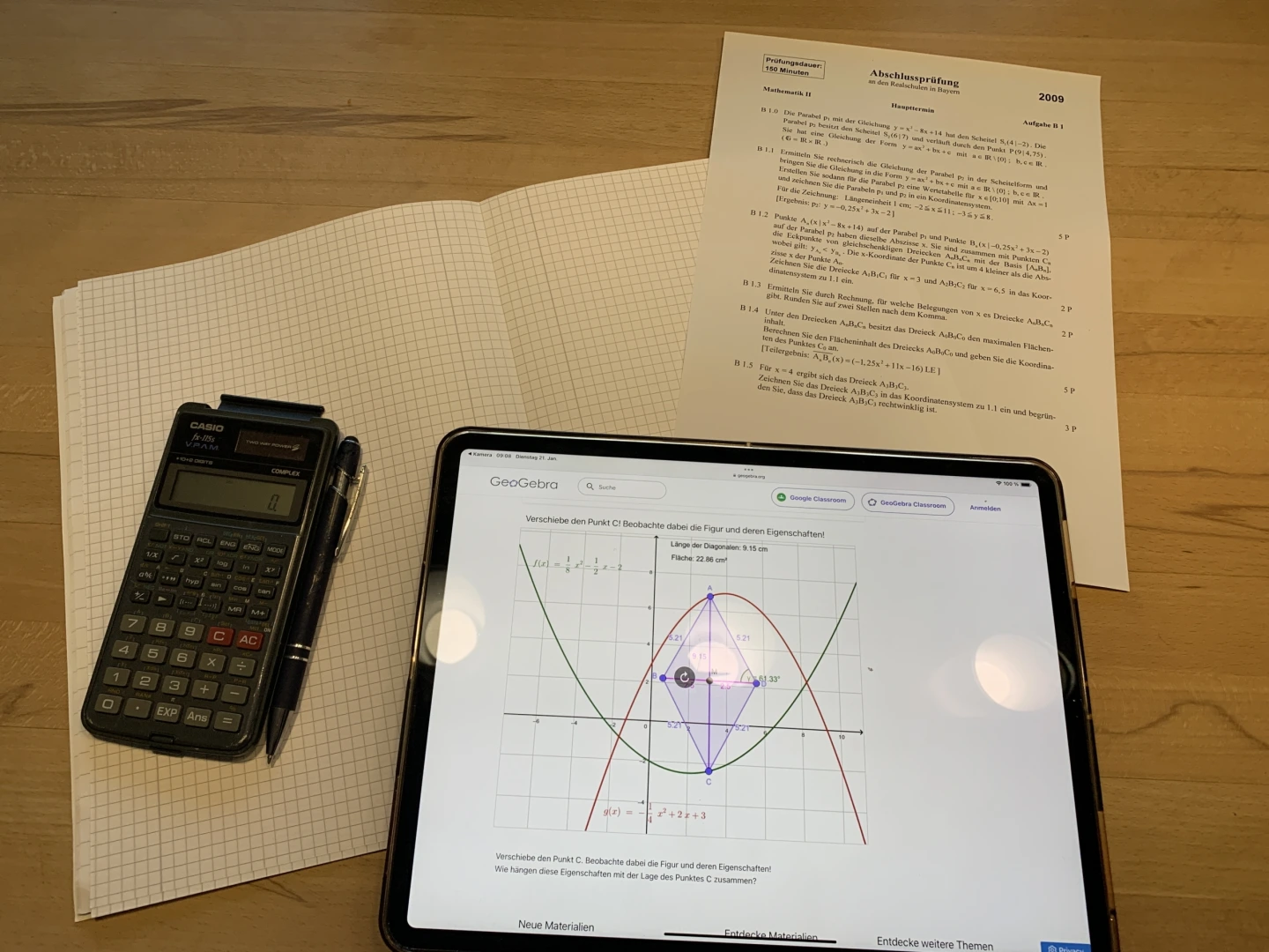 Im Mathematikunterricht gibt es Situationen, wo eine analoge Heftführung weiterhin ihre Vorteile hat. Beispielsweise das haptische und genaue Arbeiten mit Zirkel und Lineal auf Papier ist eine grundlegende Fertigkeit, die es immer weiter zu entwickeln gilt.