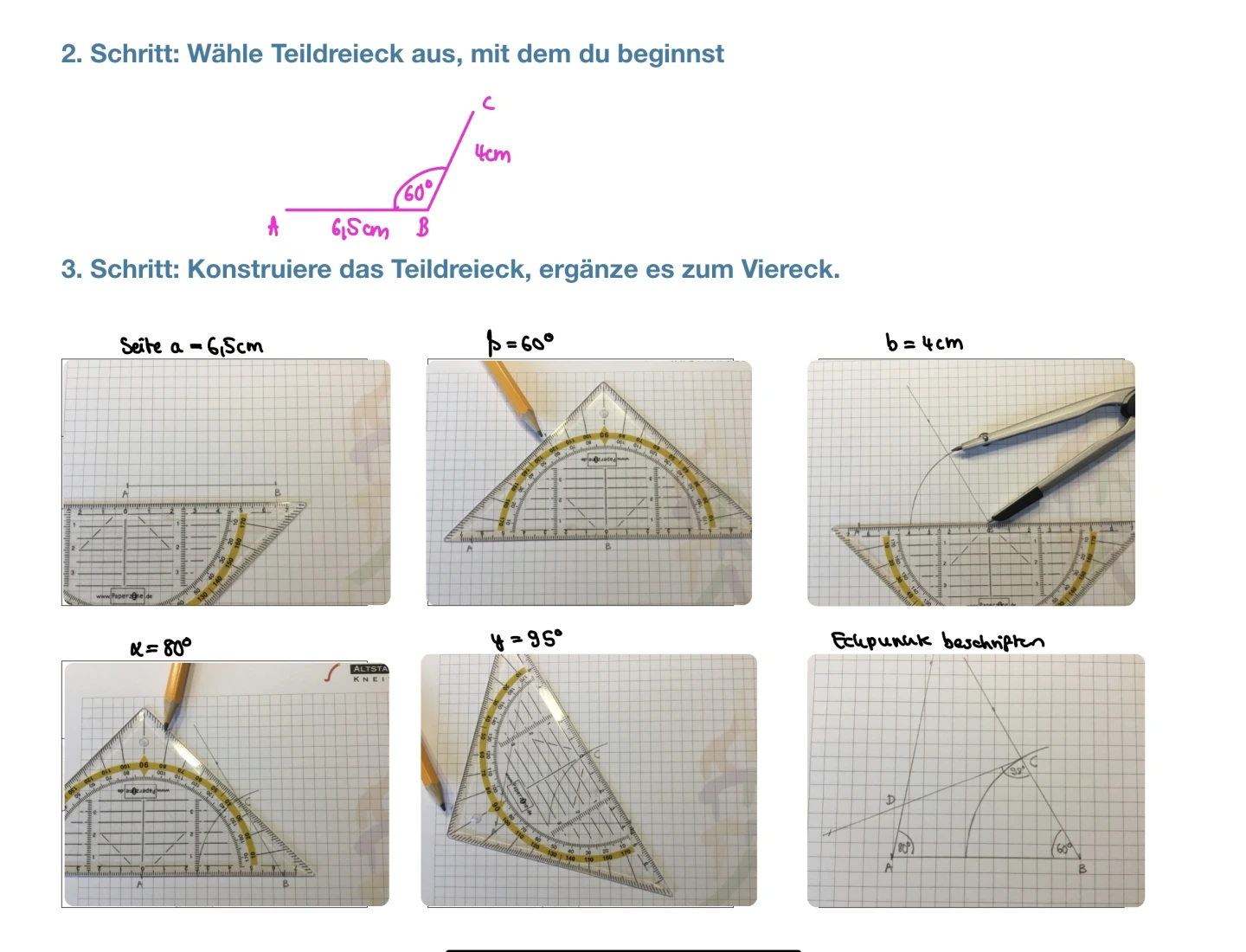 Aufgaben lassen sich sehr anschaulich und strukturiert angeleitet in einer Notizen-App darstellen. Die Konstruktionen und allgemeinen Bearbeitungen werden im analogen Heft ausgeführt und anschließend fotografiert. Am Ende sind alle Arbeitsergebnisse im digitalen Heft - an einem Ort - gesammelt.