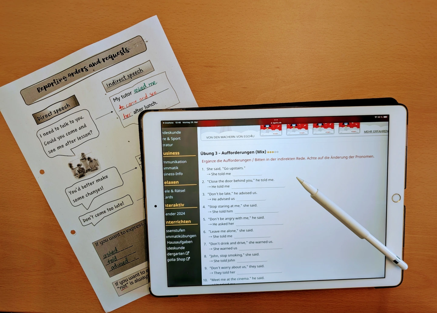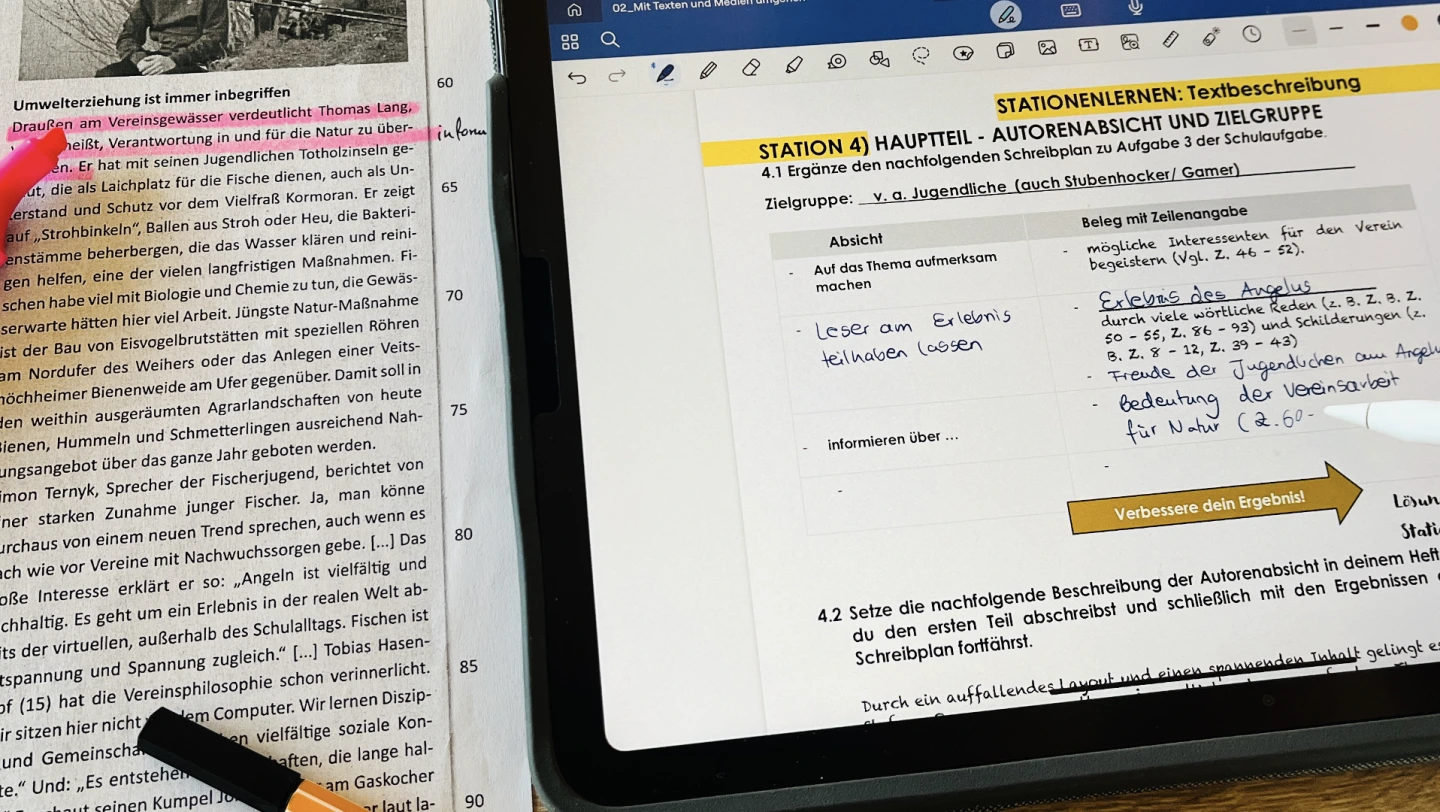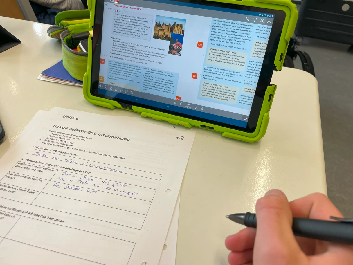 “Im Sprachunterricht müssen häufig längere Texte gelesen und analysiert werden. Daher ist es sinnvoll, die Texte für eine genauere Untersuchung im Printformat auszugeben. Arbeitsaufträge zum Text können parallel dazu auf dem Tablet bearbeitet werden.”