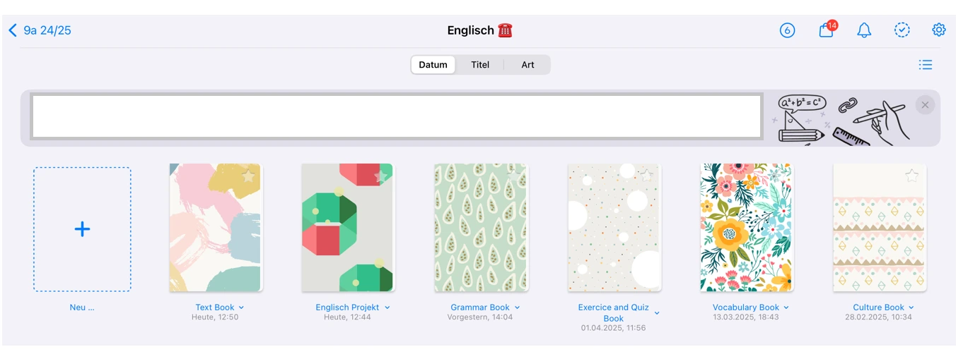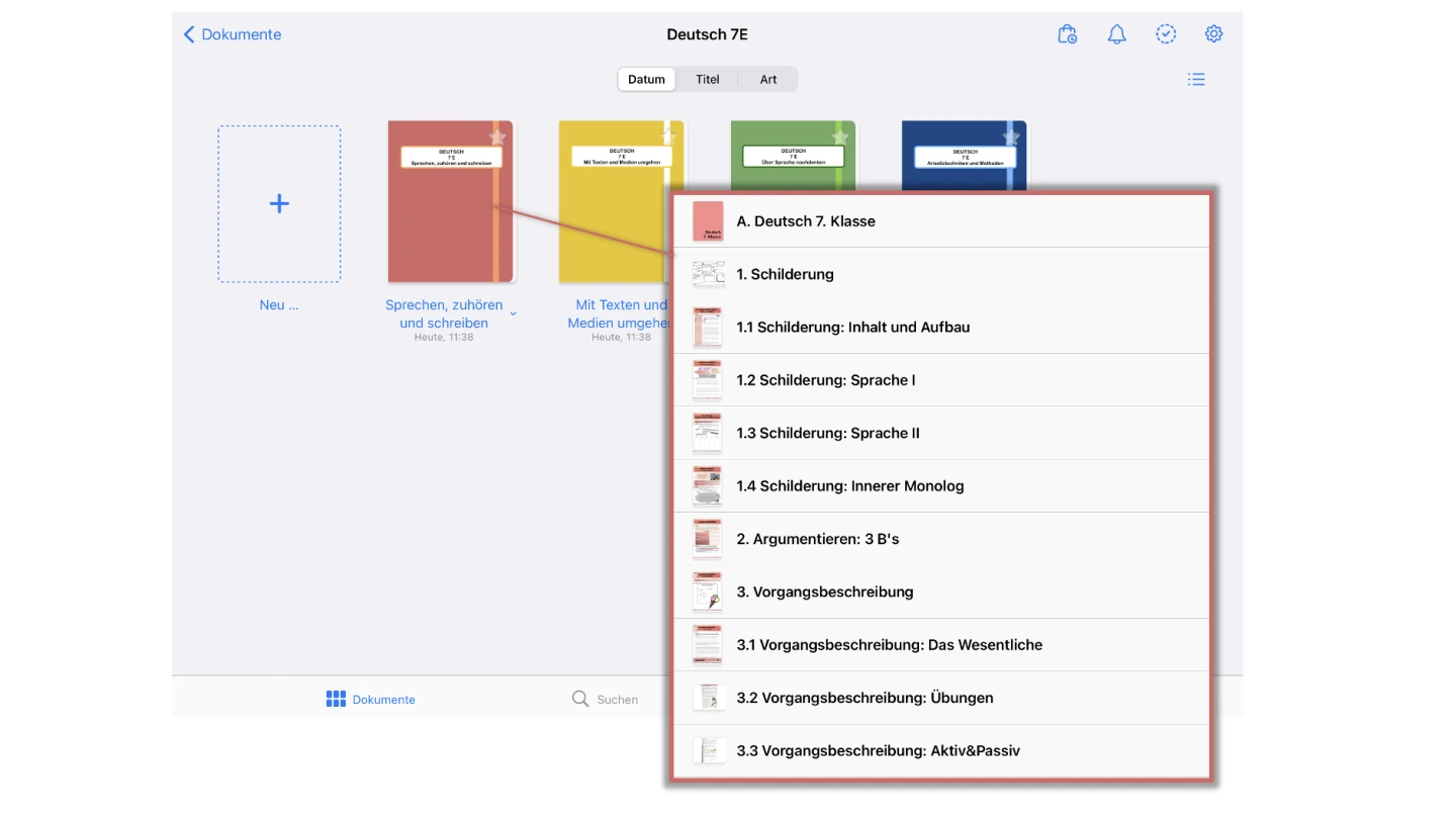 Innerhalb digitaler Hefte lassen sich durch entsprechende Gliederungsmöglichkeiten Inhalte schnell wieder finden - auch über mehrere Schuljahre hinweg.