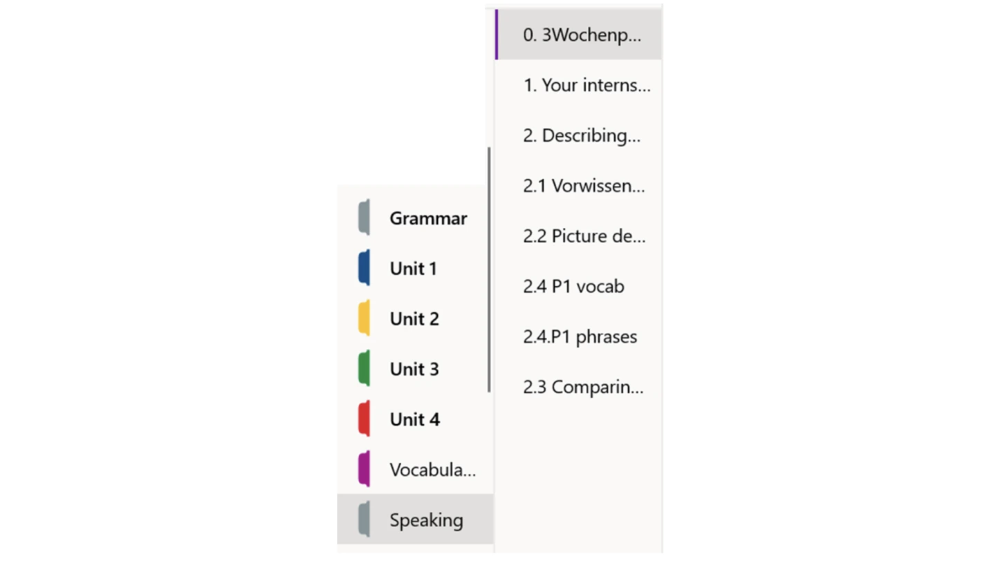 Zusätzlich zu den Units bieten sich bei besonderen Themen- oder Übungsfeldern separate Ordner im digitalen Heft an, die jedoch genauso mithilfe von Nummerierungen strukturiert werden.