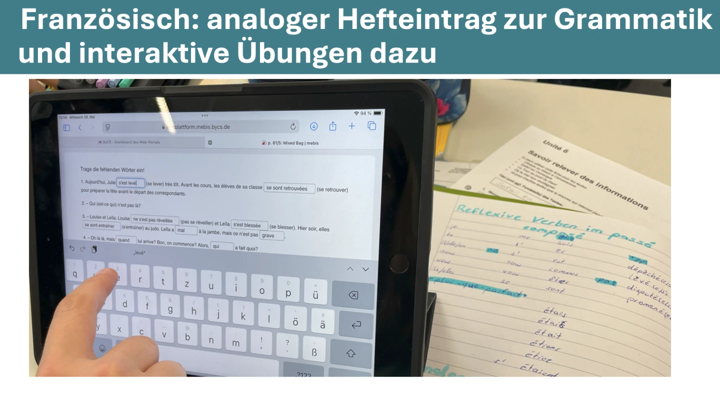“Für den Sprachunterricht gibt es eine Vielzahl an Online-Grammatikübungen, die den Lernenden mittels eines digitalen Hefts einfach über Links oder QR Codes zur Verfügung gestellt werden können. Allerdings erachte ich es als äußerst sinnvoll und praktisch, wenn die Schülerinnen und Schüler die grammatikalischen Regeln in einem analogen Heft mit “klassischen Hefteinträgen” führen, da sie bei der Bearbeitung der digitalen Übungen parallel dazu ihr Grammatikheft daneben legen können und die Regeln sofort vor Augen haben bzw. nachschlagen können.”