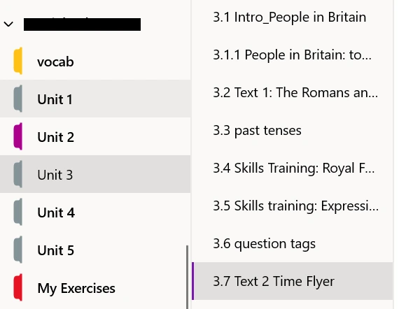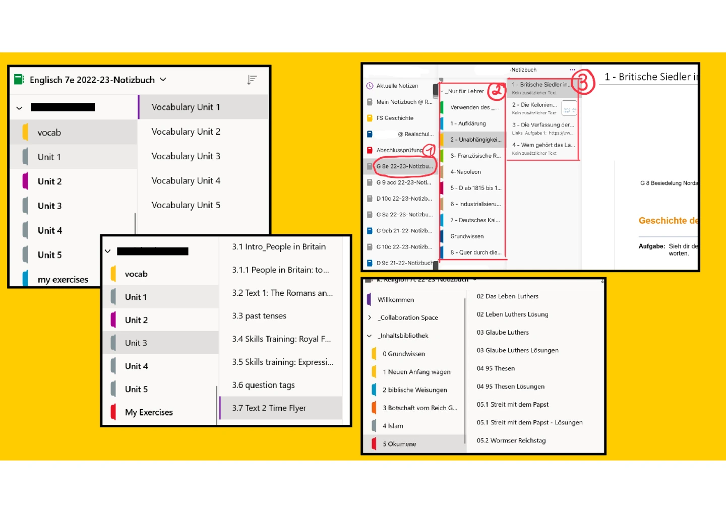 In Englisch bietet sich eine Gliederung nach den Units des Buches gut an. Innerhalb der einzelnen Units werden die digitalen Heftseiten nummeriert, um die Reihenfolge parallel zum Verlauf des Buches besser nachvollziehen zu können.