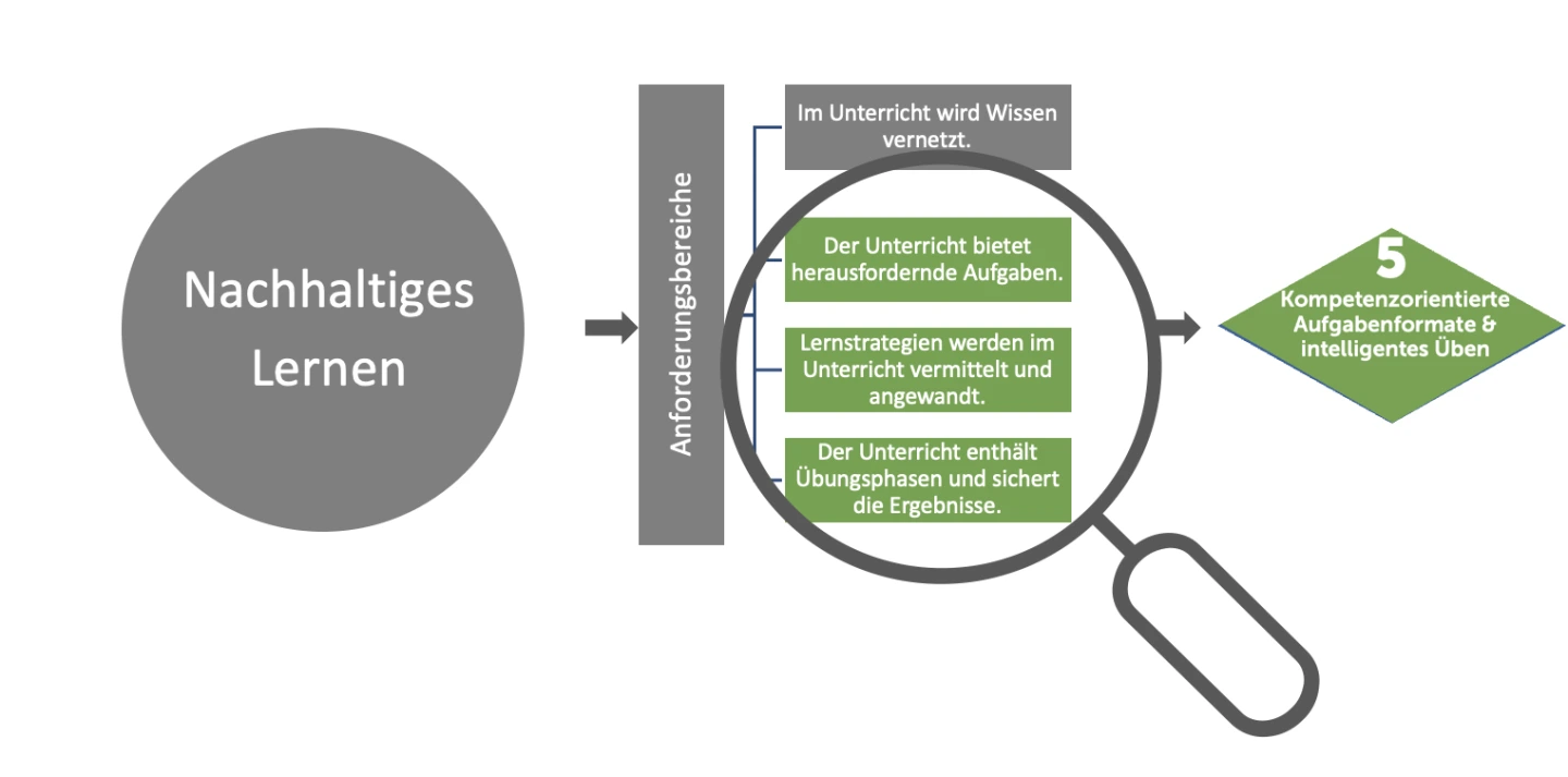 Für diese Bereiche wird ein eigener Name gewählt. Hier: Kompetenzorientierte Aufgabenformate & intelligentes Üben als Teilbereich des Nachhaltigen Lernens.