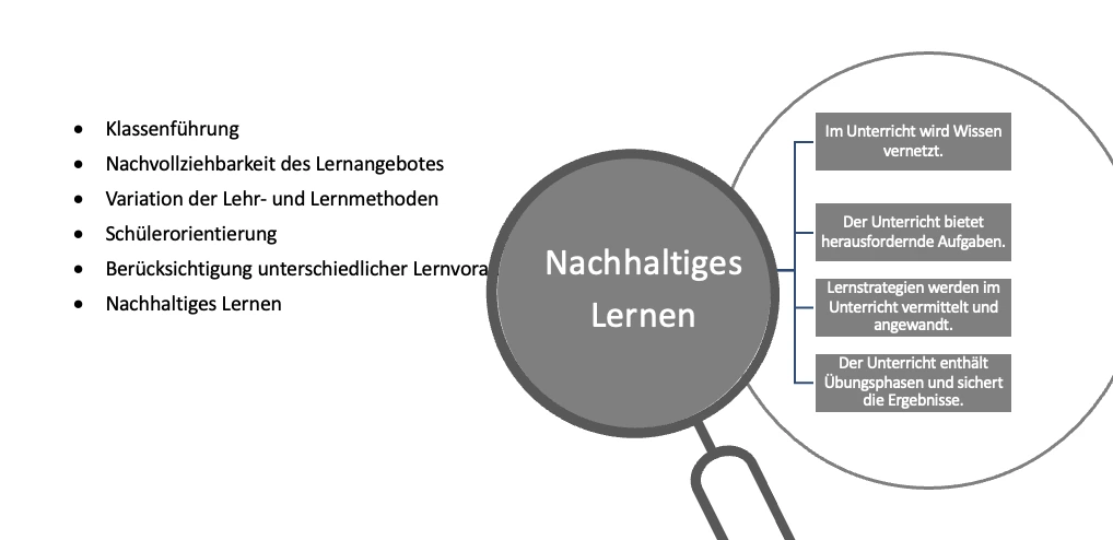 Guter Unterricht bemisst sich laut dem bayerischen Qualitätstableau der Qualitätsagentur des Staatsinstituts für Schulqualität und Bildungsforschung München an folgenden Qualitätskriterien: