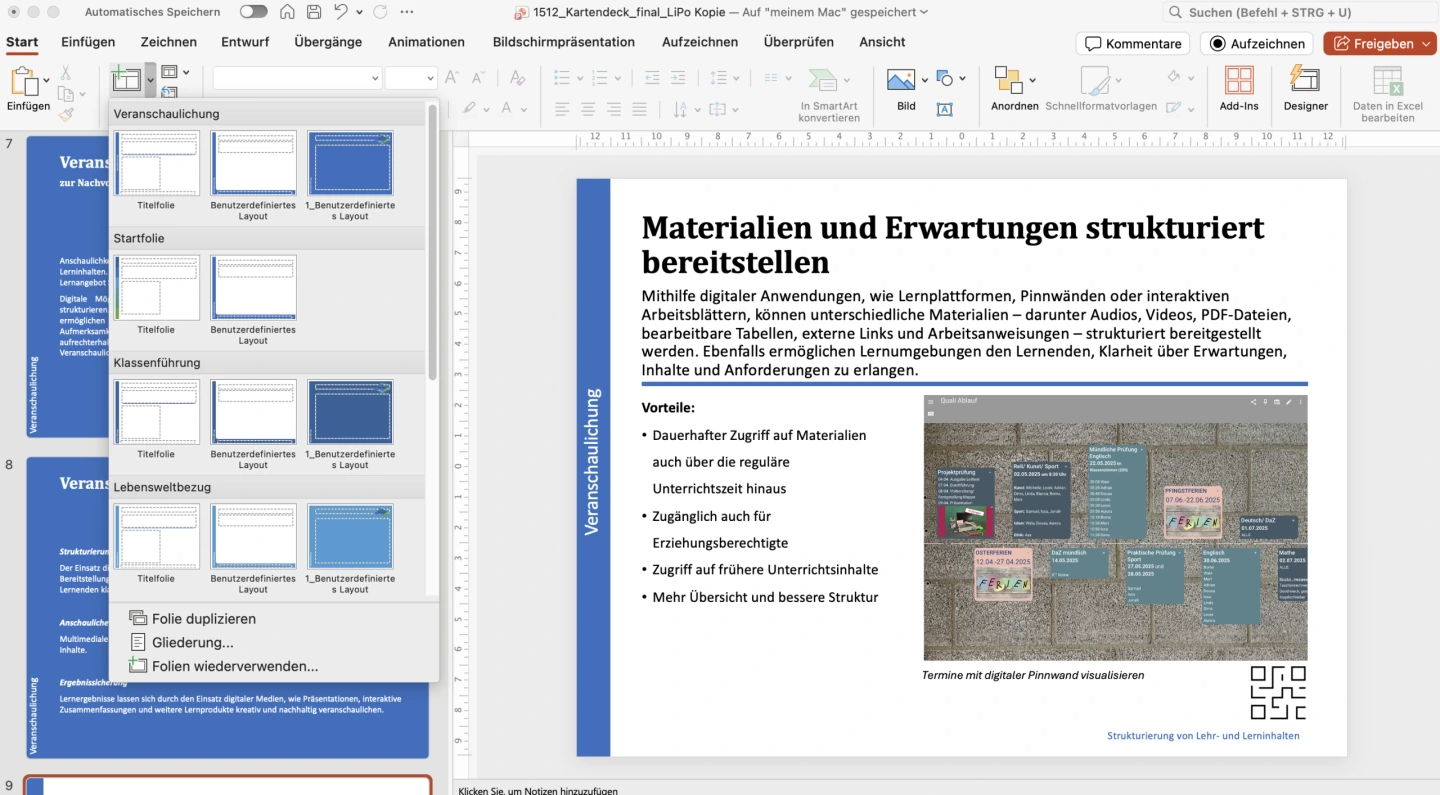 In Zusammenarbeit mit Lehrkräften der Mittelschule wurden bereits fachspezifische Kartendecks zu verschiedenen Bereichen ausgearbeitet: