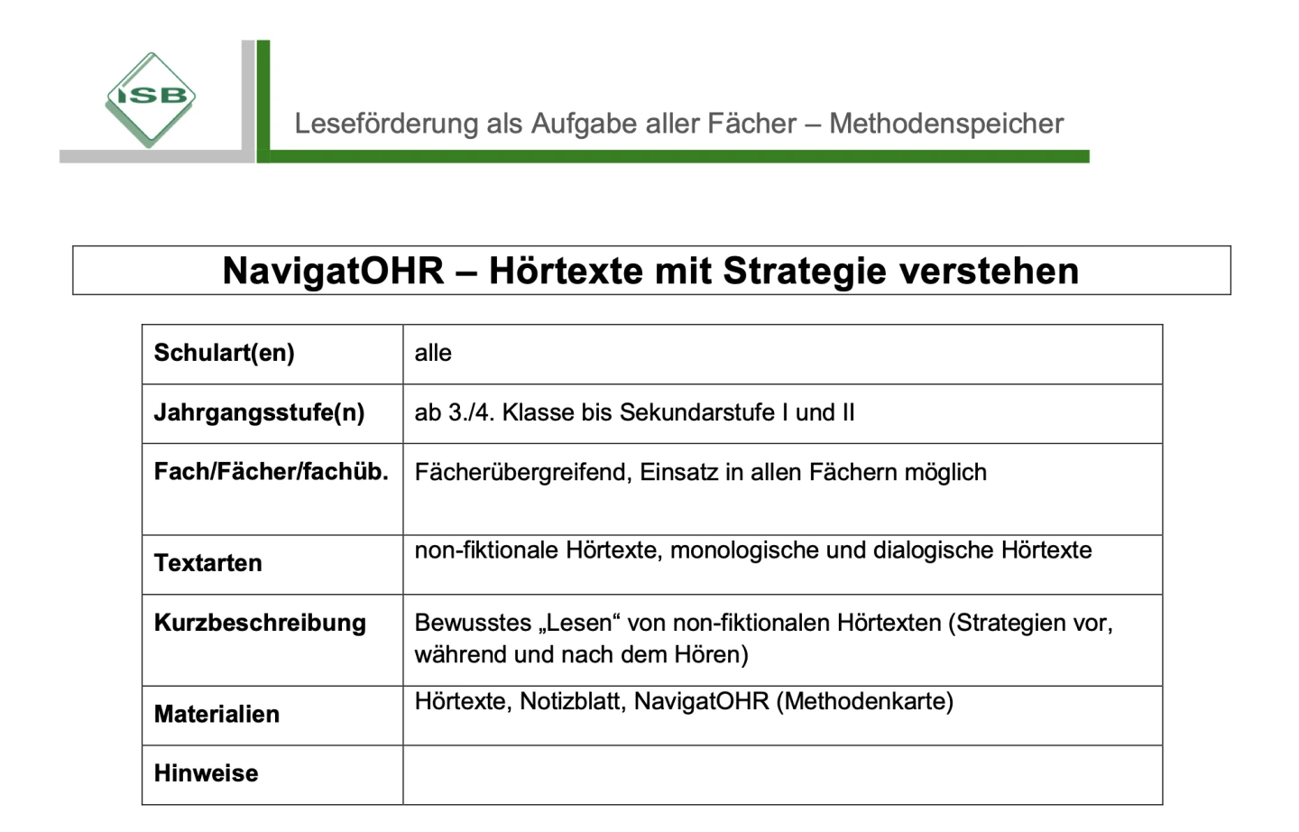 Didaktische Hinweise und Unterstützungsmaterialien zur Steigerung der Lesemotivation durch Audios