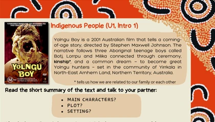 Ein kurzer, tonloser Trailer zum Video wird den Lernenden gezeigt. Sie formulieren Vermutungen zur Handlung, Stimmung und Thematik. Anschließend lesen sie eine kurze Inhaltszusammenfassung und halten die wichtigsten Erkenntnisse zusammen mit den vorherigen Vermutungen kollaborativ in einem gemeinsamen Dokument fest.