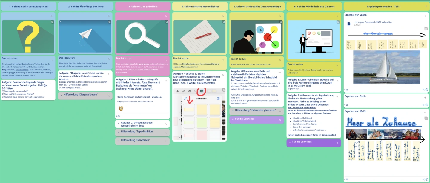 Dies ermöglicht verschiedene Lernzugänge, steigert die aktive Auseinandersetzung mit dem Text und fördert sowohl Meta-Kognition als auch wechselseitiges Feedback.