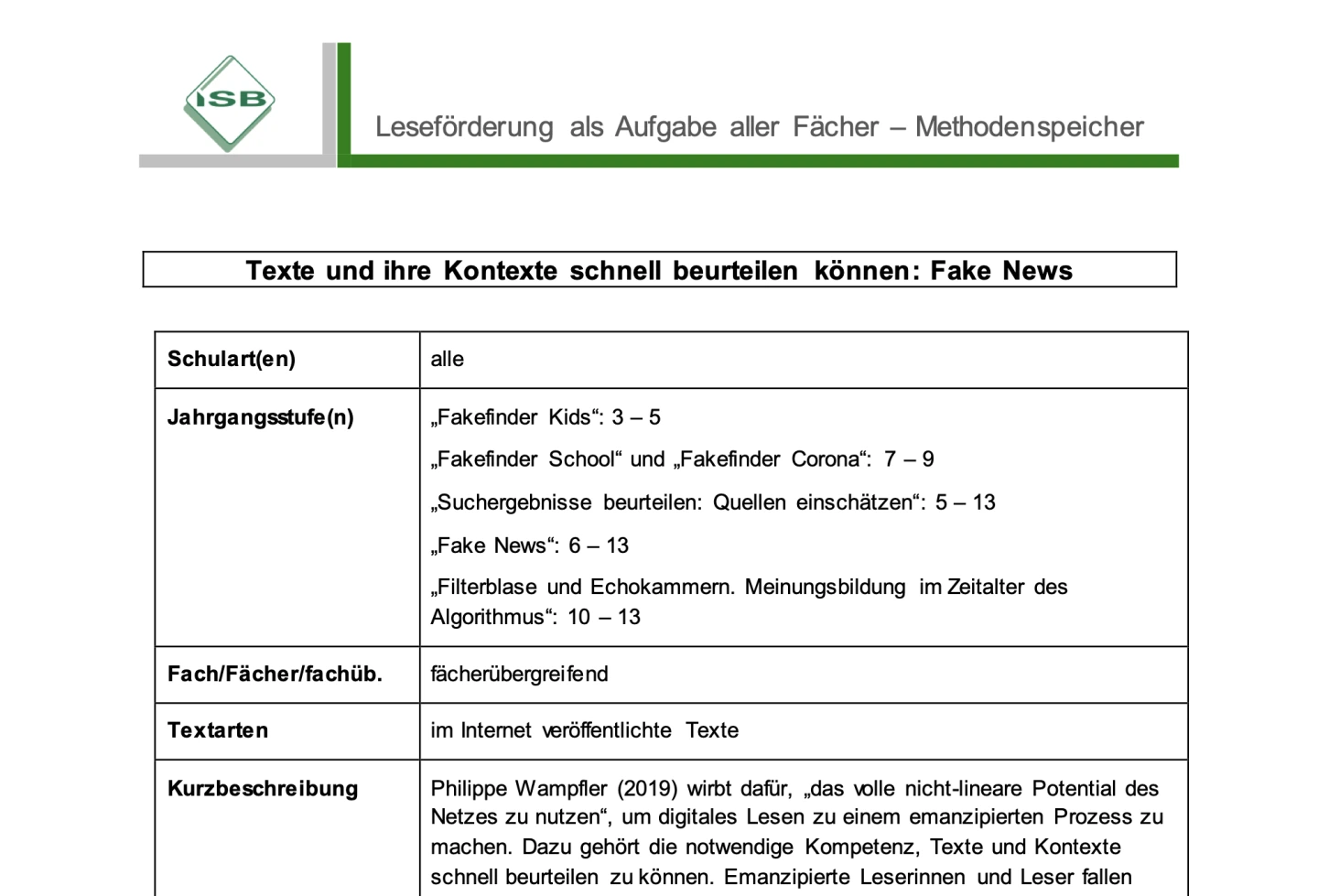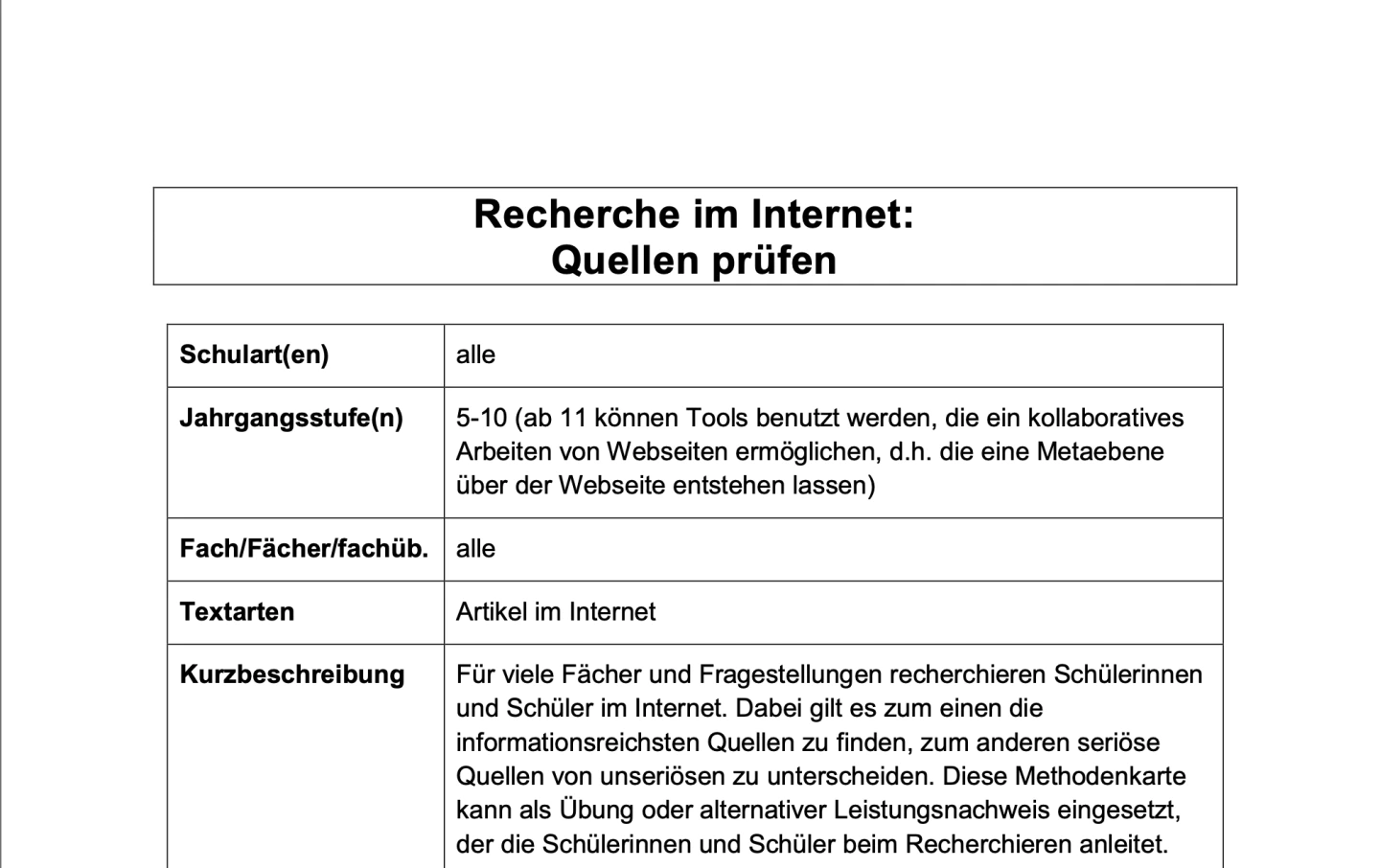Um Schülerinnen und Schüler dann an die Beurteilung der Vertrauenswürdigkeit von Texten heranzuführen, ist es sinnvoll, nicht nur qualitativ gute, von der Lehrkraft vorausgewählte Texte in den Unterricht einzubeziehen, sondern Kinder und Jugendliche bewusst auch mit Informationen unterschiedlicher Seriosität und Güte zu konfrontieren.