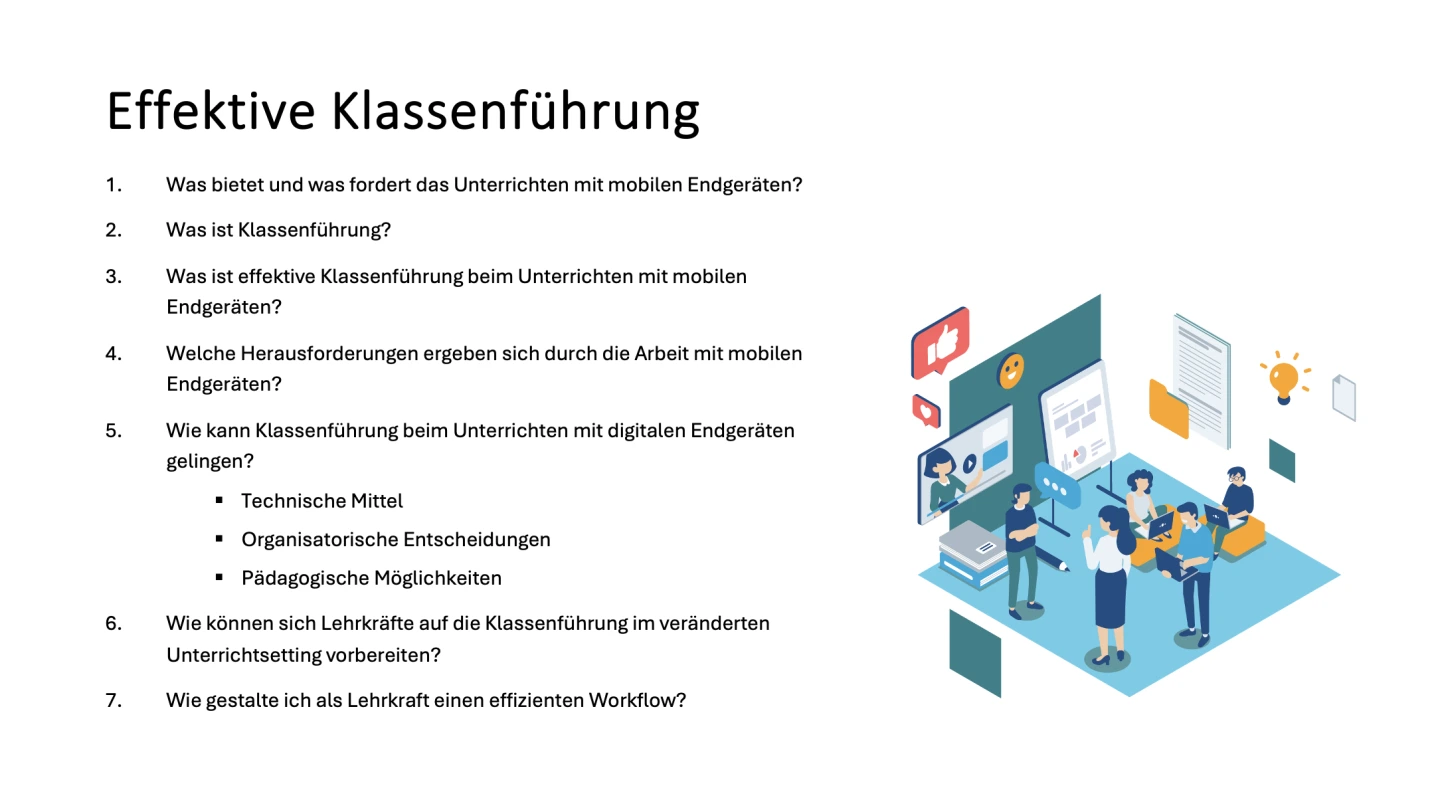 Hier finden Sie Folien zur Definition von Klassenführung und zu den veränderten Anforderungen im Kontext der Ausstattung mit mobilen Endgeräten, basierend auf dem bayerischen Qualitätstableau.