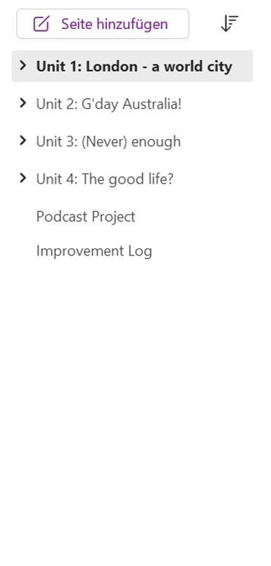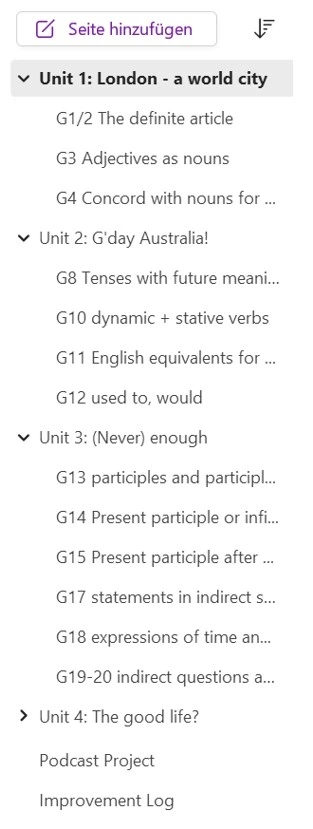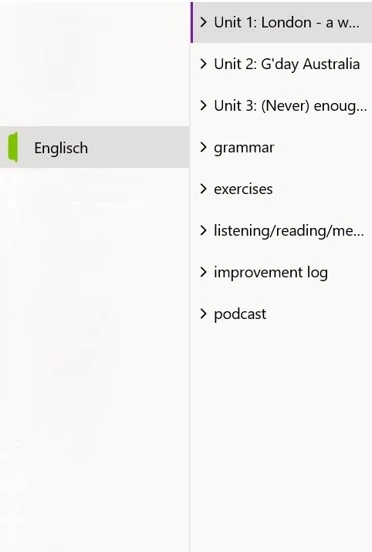 In der Regel wählen die Schülerinnen und Schüler eine Notizenapp, in der sie ihr Material in strukturierter Form organisieren. Die Lernenden werden von mir angeleitet, Hefteinträge, Übungen und Hausaufgabe nach Lehrwerkskapitel bzw. Thema sortiert abzulegen. Sie werden von mir dazu angehalten, hier individuelle Ergänzungen vorzunehmen, z. B. nützliche Webseiten zu verlinken, thematische Grafiken einzufügen etc., sodass sie wirklich von den Vorteilen einer digitalen Heftführung profitieren können. Das flexible Ordnen von Inhalten und nachträgliche Korrigieren bzw. Verschieben erweisen sich natürlich als vorteilhaft.