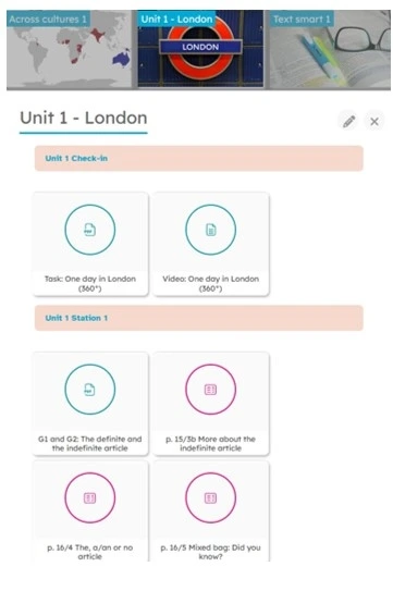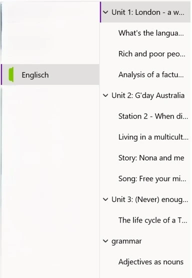 Innerhalb der Kacheln findet sich auch eine Untergliederung, die an das Lehrwerk angelehnt ist.