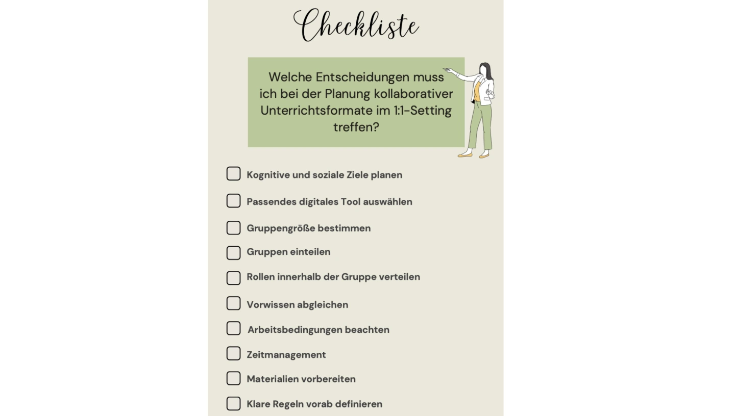 Welche Entscheidungen muss ich bei der Planung kollaborativer Unterrichtsformate im 1:1-Setting treffen?