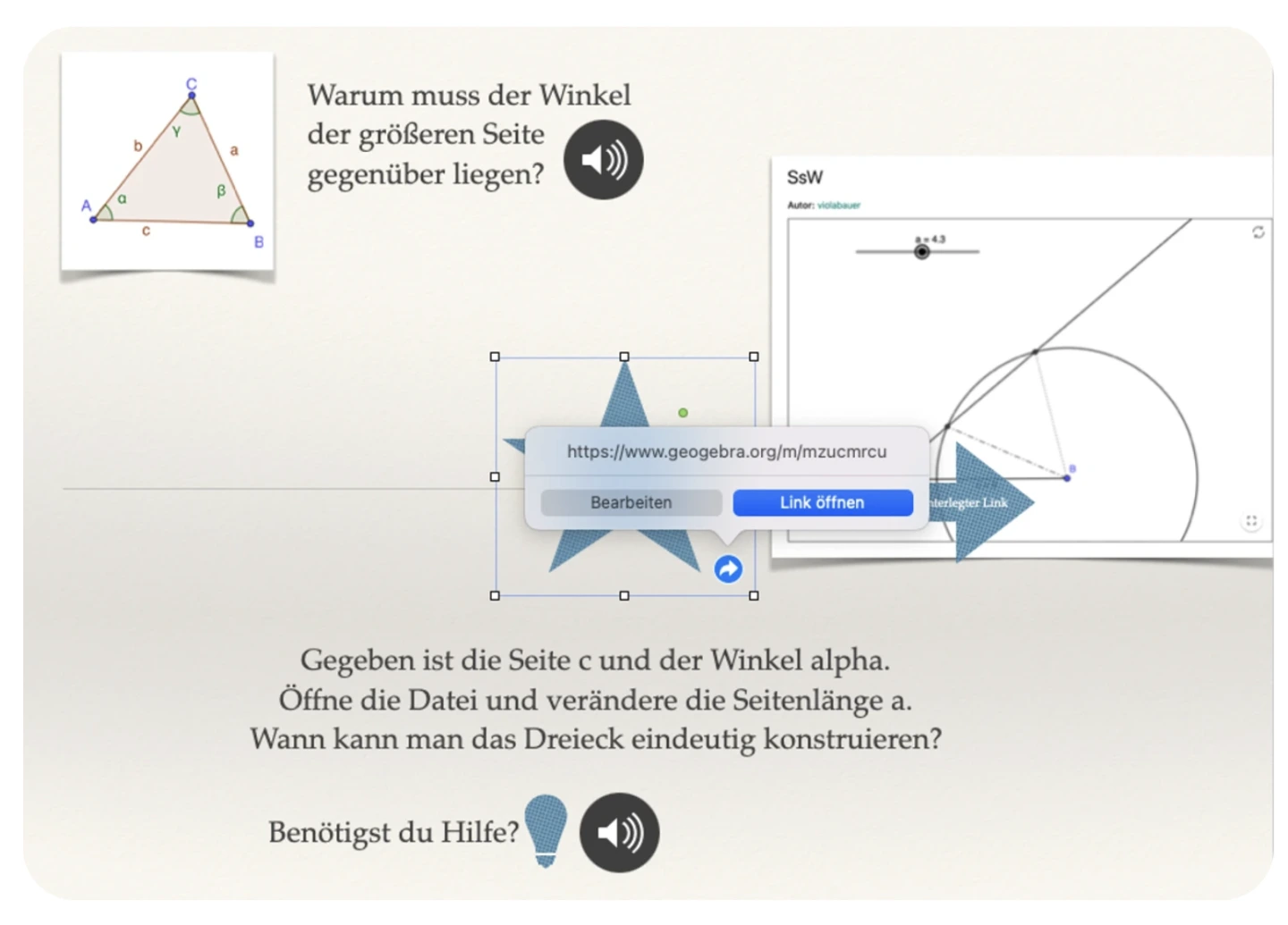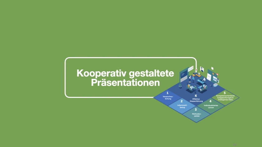 Präsentationstools ermöglichen auch die Einbettung von Links oder Arbeitsaufträgen in Form von digitalen Arbeitsmaterialien, d. h. sind die Dateien auf Online-Speichermedien/ Cloudspeichern bereitgestellt oder besteht eine Internetverbindung, so kann unmittelbar von der Präsentation aus auf Internetseiten oder digitale Arbeitsaufträge zugegriffen werden. Präsentationstools bieten dadurch die Möglichkeit, Lerninhalte in Lernumgebungen vielfältig abzubilden, wodurch Lernprozesse gesteuert werden können und Schülerinnen und Schülern somit ein individuelles und selbstständiges Lernen ermöglicht wird.