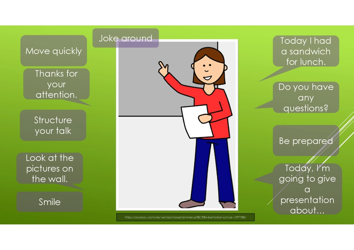 Je nach Aufgabenstellung sollen Lernende folgende Fähigkeiten erwerben, um erfolgreich zu präsentieren: