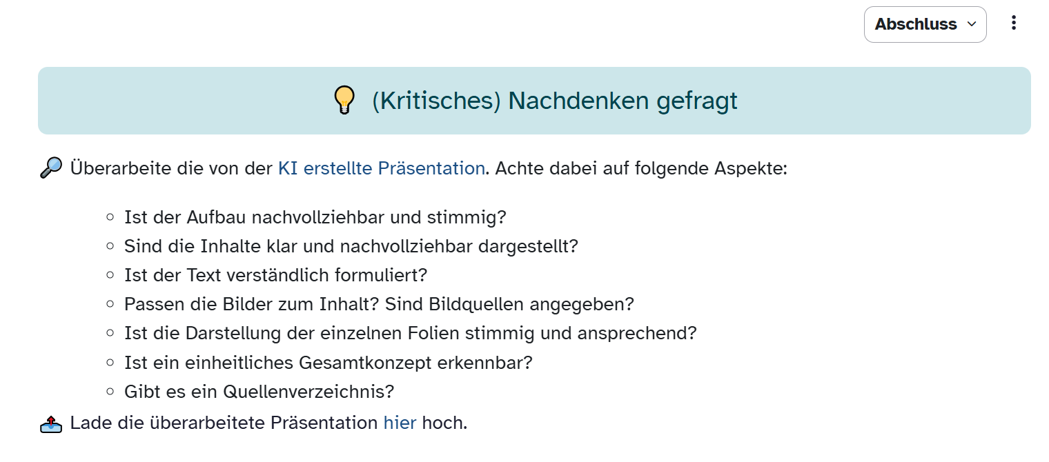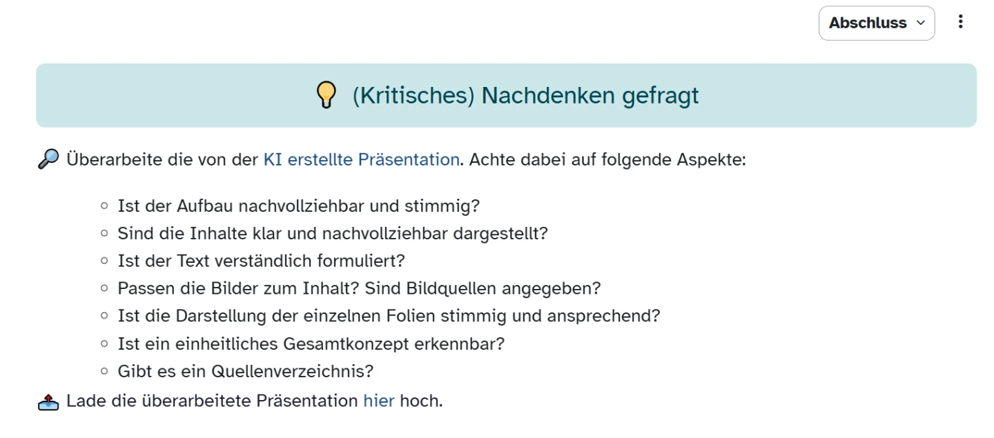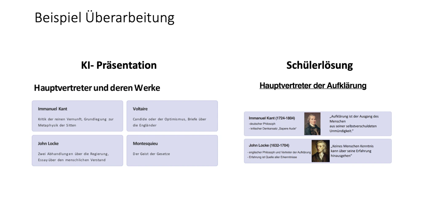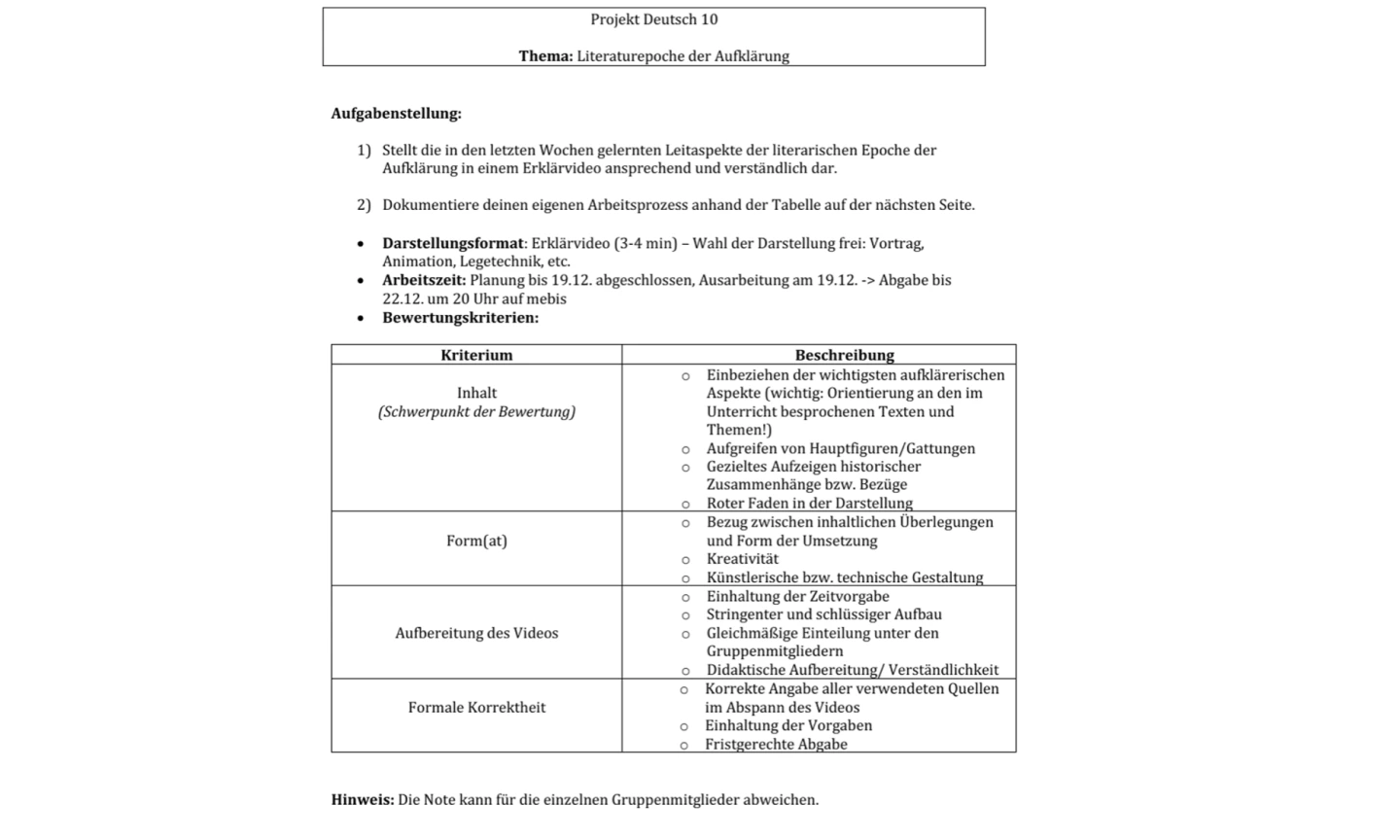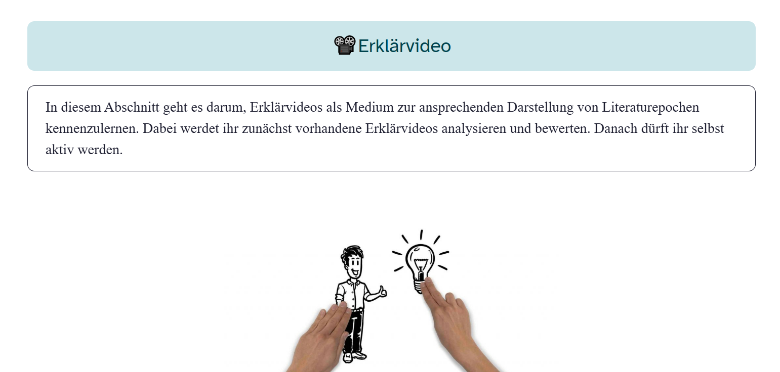 Ein motivierender Zugang für Schülerinnen und Schüler kann das Erstellen eines Erklärvideos sein. Dieses Format fördert nicht nur ein tiefes Verständnis der Inhalte, sondern schult gleichzeitig Medienkompetenz und kreatives Arbeiten. Die Lernenden setzen sich intensiv mit den Ideen der Aufklärung auseinander, übersetzen sie in ihre eigene Sprache und gestalten sie visuell ansprechend – eine aktive und nachhaltige Art des Lernens, die sie selbst in die Rolle der Aufklärer versetzt, Zusammenhänge und Leitdanken nachvollziehbar zu erklären und bestehende Grundlagen kritisch zu hinterfragen.