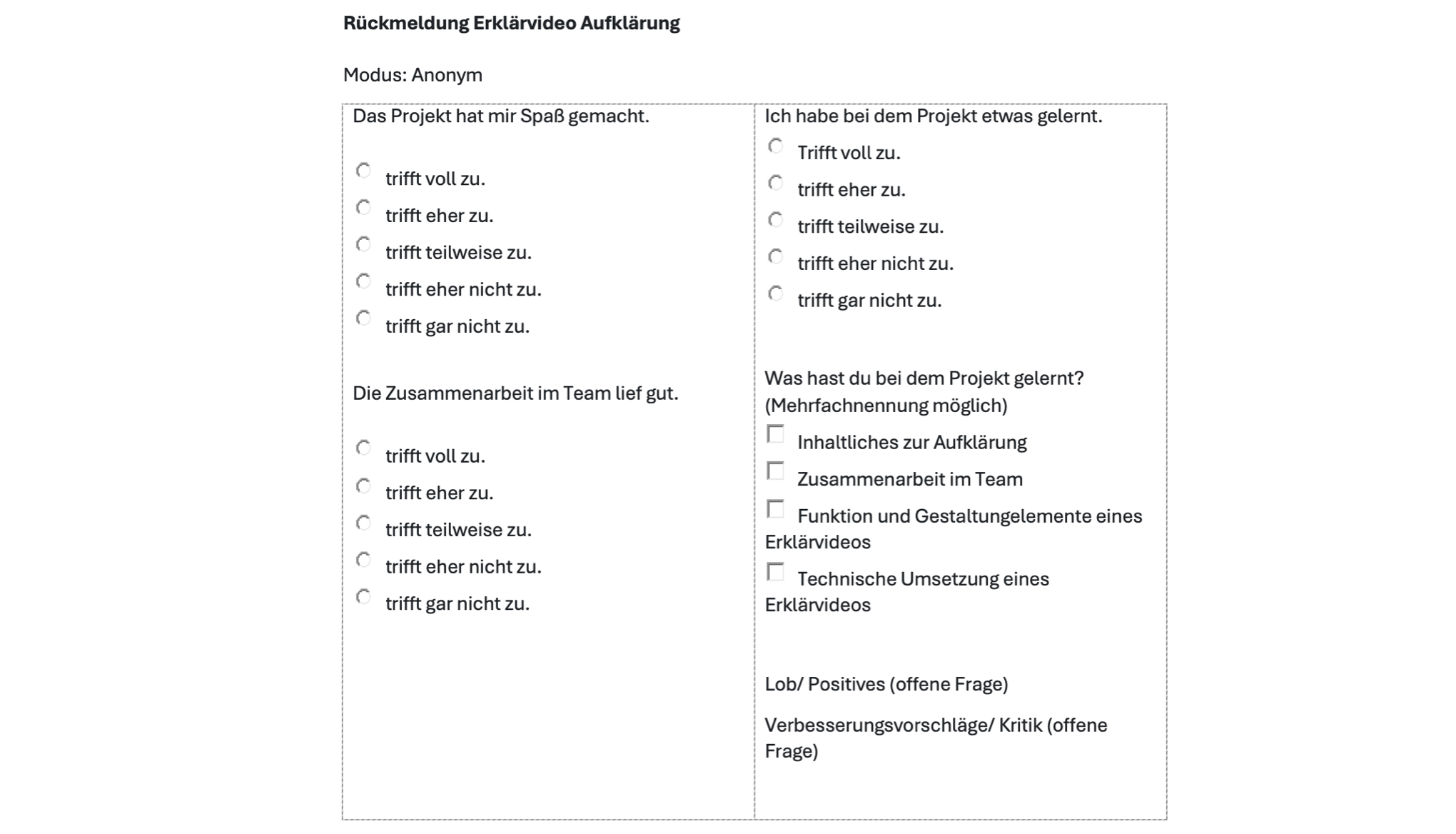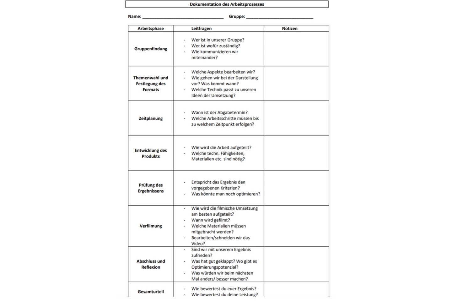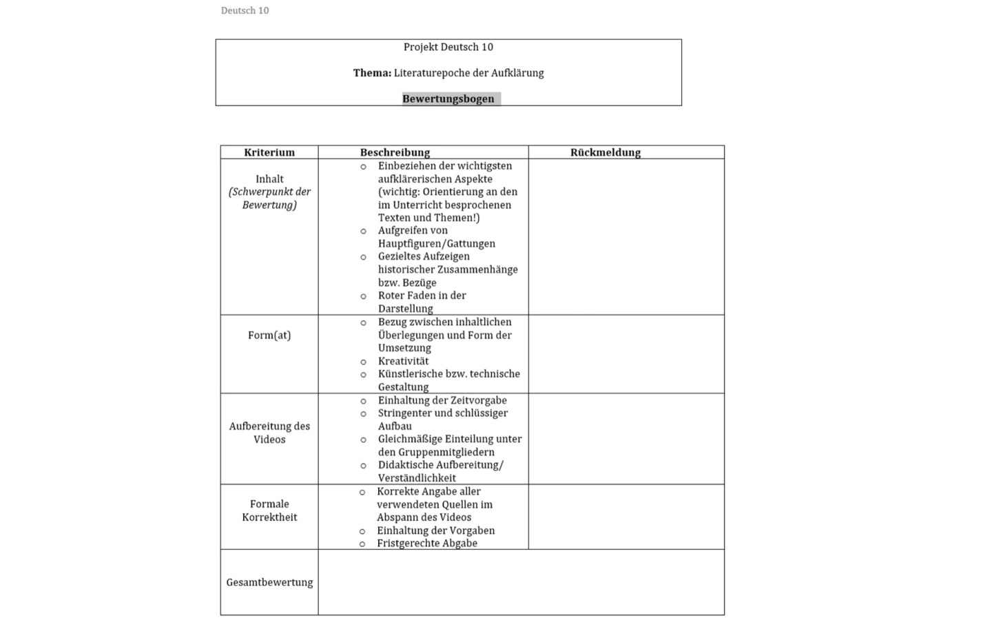 Aktivität: Feedback durch die Lehrkraft anhand eines Bewertungsbogens