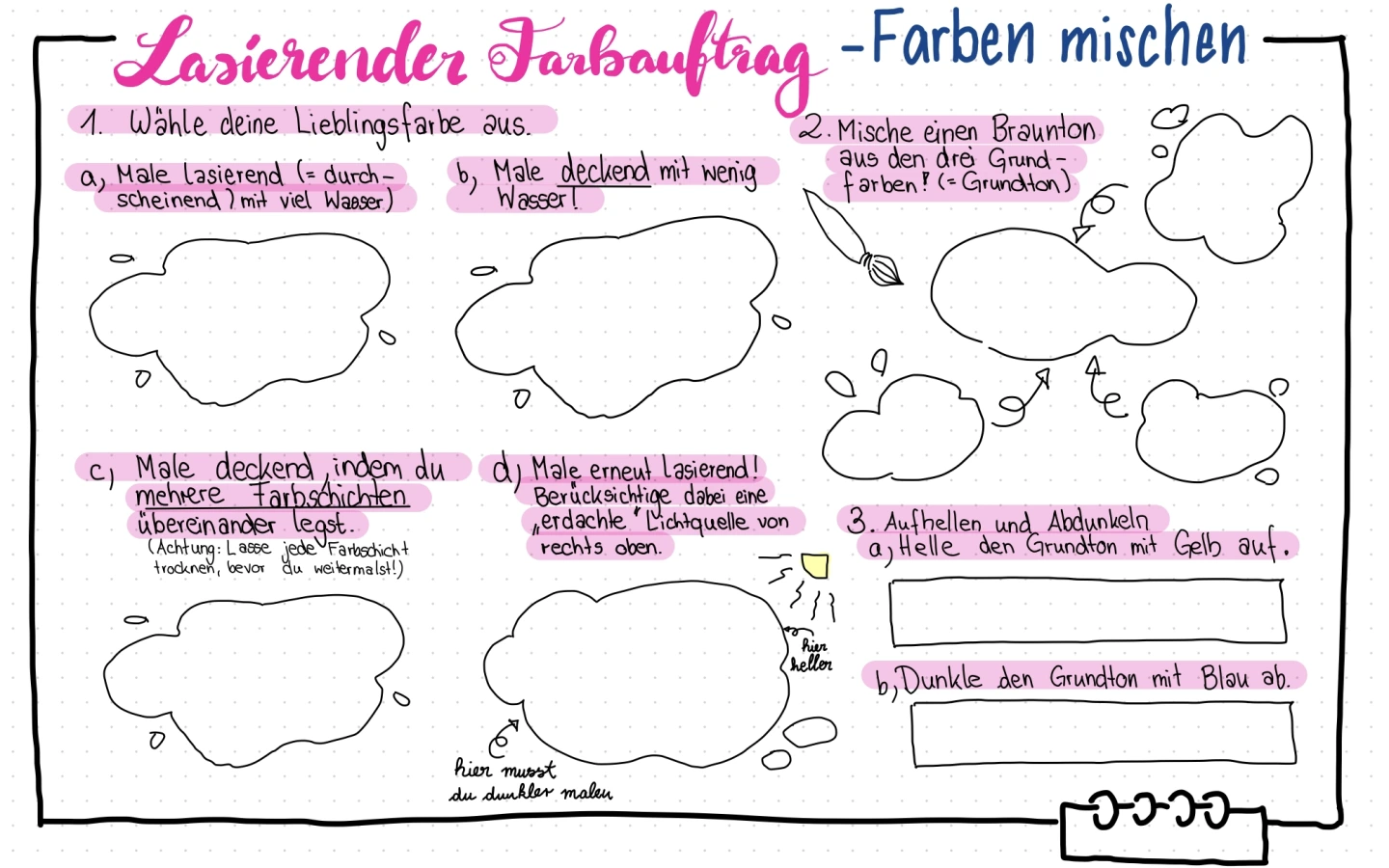 Sammeln und Strukturieren von Ideen, Informationen und Vorwissen in Form von visuellen Darstellungen (Bilder, Symbole, Text).