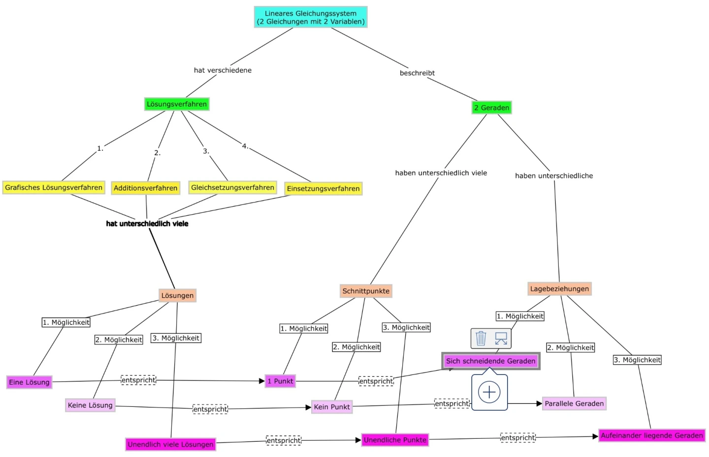 Mit Hilfe einer Mindmap wird ein zentrales Thema erschlossen, welches durch eine baumartige, hierarchische Struktur dargestellt wird. Verbindungen bestehen lediglich assoziativ, nicht formal. -