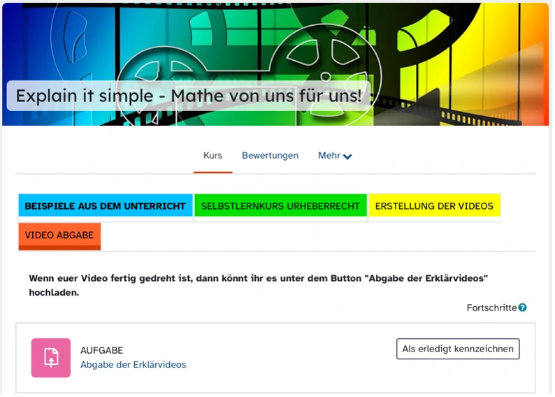 Die Abgabe der Videos erfolgt über eine Lernplattform. Hier kann das Produkt direkt im Kurs bewertet werden.
