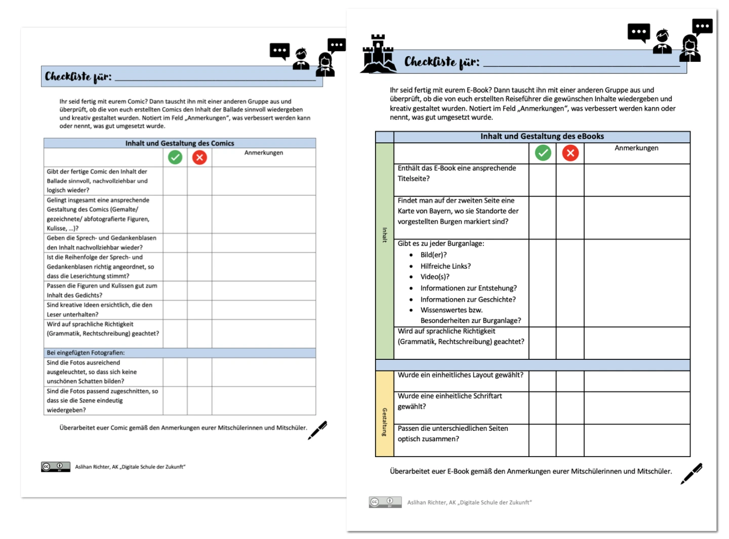 Lernprodukte hinsichtlich ihrer Qualität zu bewerten, fördert die Reflexionsfähigkeit der Lernenden. Sie setzen sich dabei bewusst mit ihren Ergebnissen oder den Produkten ihrer Mitschülerinnen und Mitschüler auseinander und lernen differenziert Rückmeldung zu geben. Peer-Feedback kann demnach gezielt verwendet werden, um Überarbeitungsprozesse anzuleiten. Digitale Endprodukte lassen sich einfach und jederzeit überarbeiten. Das fordert und fördert die Akzeptanz von Rückmeldungen und macht die Überarbeitung zu einem selbstverständlichen Bestandteil des Lernprozesses.