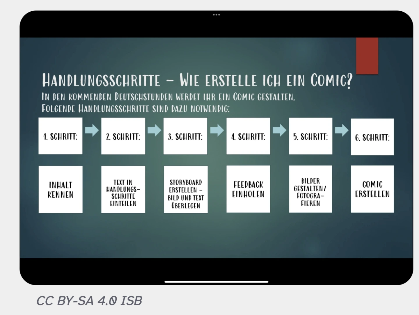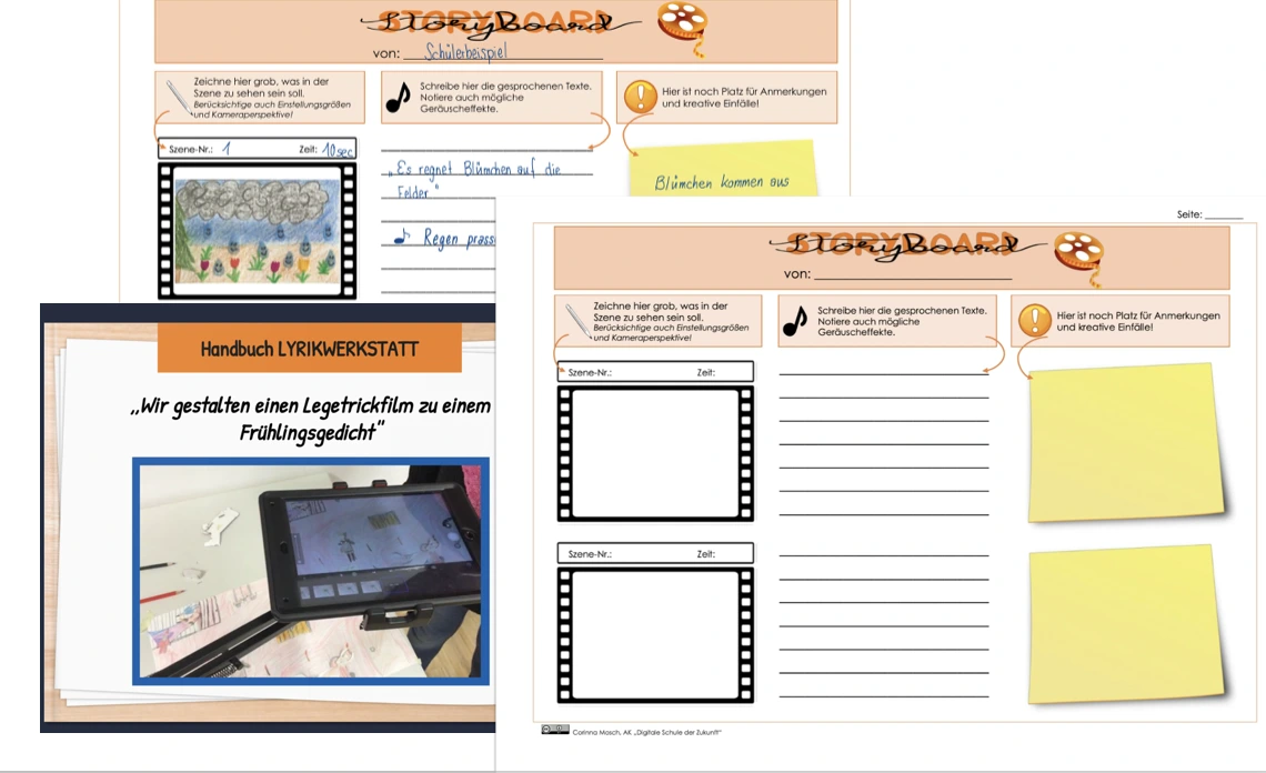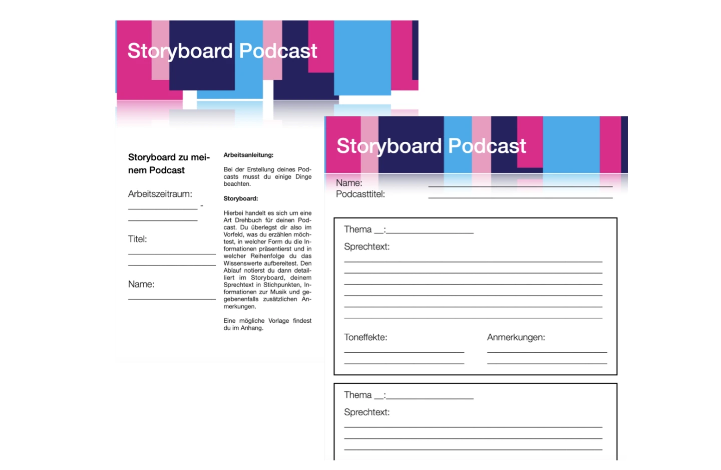 Zentraler Bestandteil der Arbeitsphase ist die Erstellung eines Storyboards. Zur Unterstützung erhalten die Lernenden hierfür passende Vorlagen. -