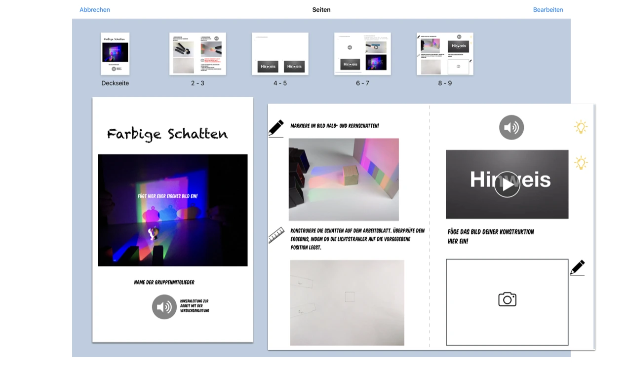 Die Lernenden wenden ihr Wissen über Halb- und Kernschatten in vielfältigen Aufgaben zum Thema farbige Schatten an. Der Umgang mit der Experimentieranleitung erfolgt über eine Audiodatei. Jeder Arbeitsschritt wird durch multimediale Elemente unterstützt. -