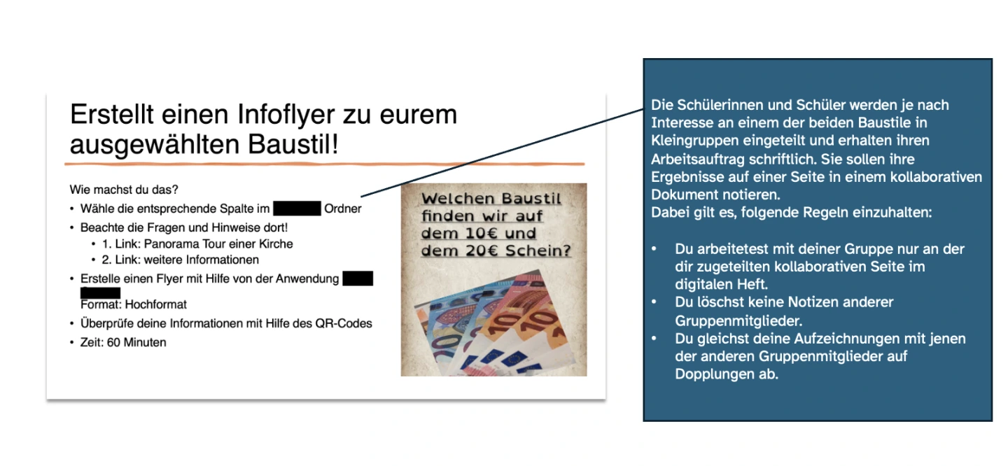 Lernende benötigen klare Informationen zu den Zielen, dem Vorgehen, der thematischen Einbettung sowie zur Motivation und Begründung der Aufgabe. Das Zielprodukt sollte präzise beschrieben und durch Hinweise sowie eindeutige Angaben zu allen Unterstützungs- und Hilfsangeboten ergänzt werden. Werden diese Informationen in einer Lernumgebung bereitgestellt, stehen sie den Lernenden während des gesamten Bearbeitungsprozesses jederzeit zur Verfügung, sodass die Lehrkraft gezielt darauf verweisen kann.