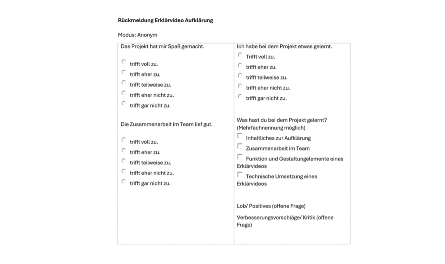 Diese Reflexion kann selbstverständlich auch mit digitalen Werkzeugen durchgeführt werden. Dadurch erhält die Lehrkraft eine direkte Auswertung.