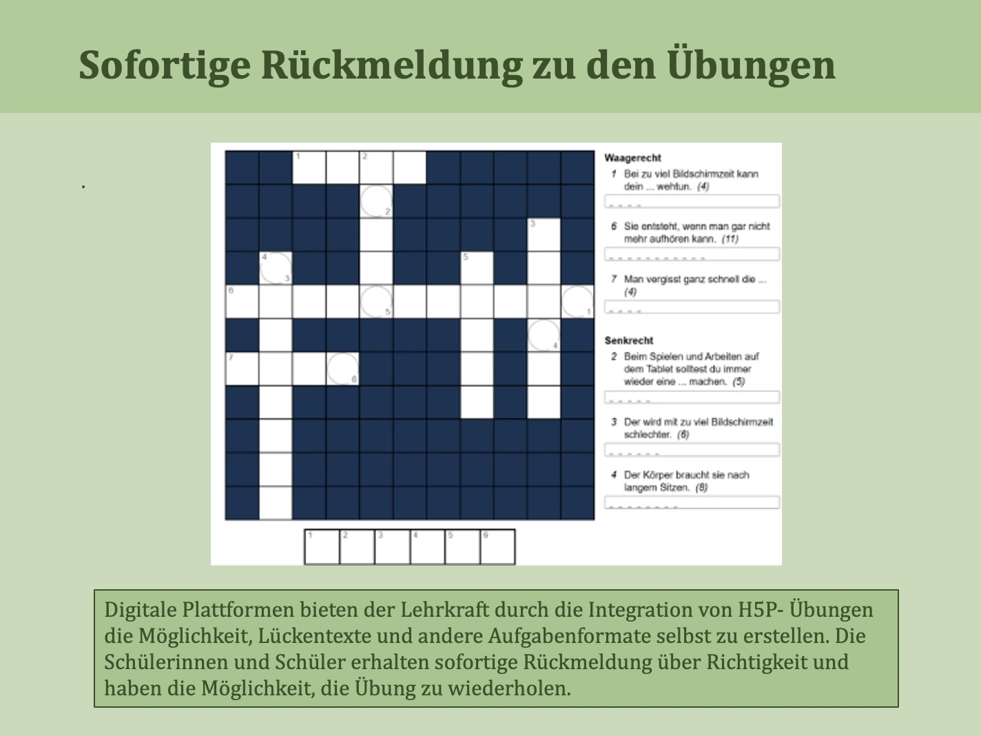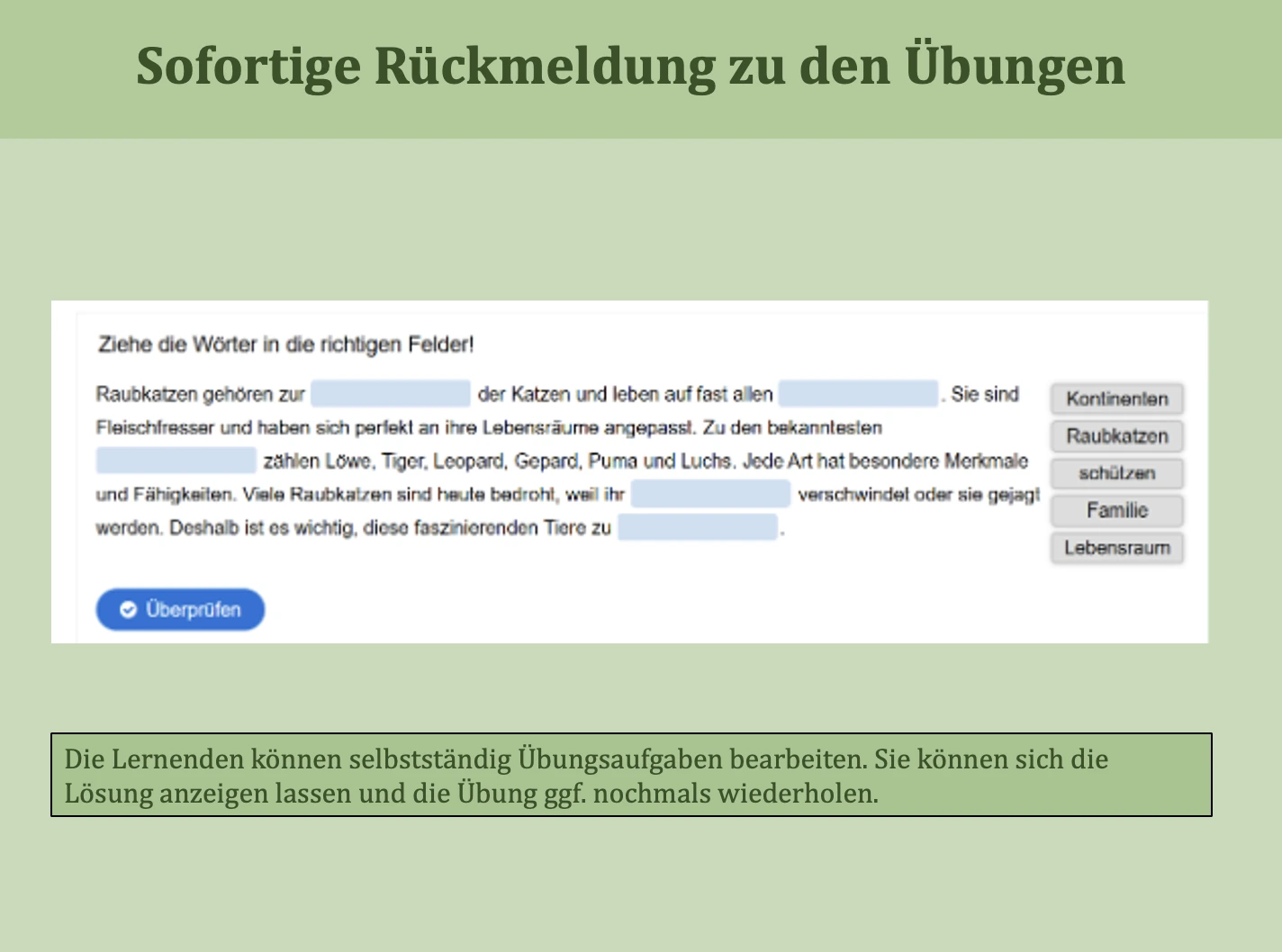 Sofortige Rückmeldungen zu den Übungen