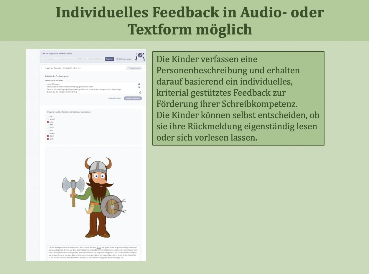 Digitale Lernplattformen können Rückmeldungen geben, die über ein Einfaches „richtig“ oder „falsch“ hinausgehen. Schülerinnen und Schüler erhalten Hinweise, die ihnen helfen, ihre Fehler zu verstehen und ihre Lösungen zu verbessern. Zusätzlich können passende weiterführende Übungen angeboten werden, die sich am individuellen Lernstand orientieren. In manchen Fällen unterstützen auch kurze Erklärungen oder Videos dabei, Inhalte besser zu verstehen und selbstständig weiterzuarbeiten.