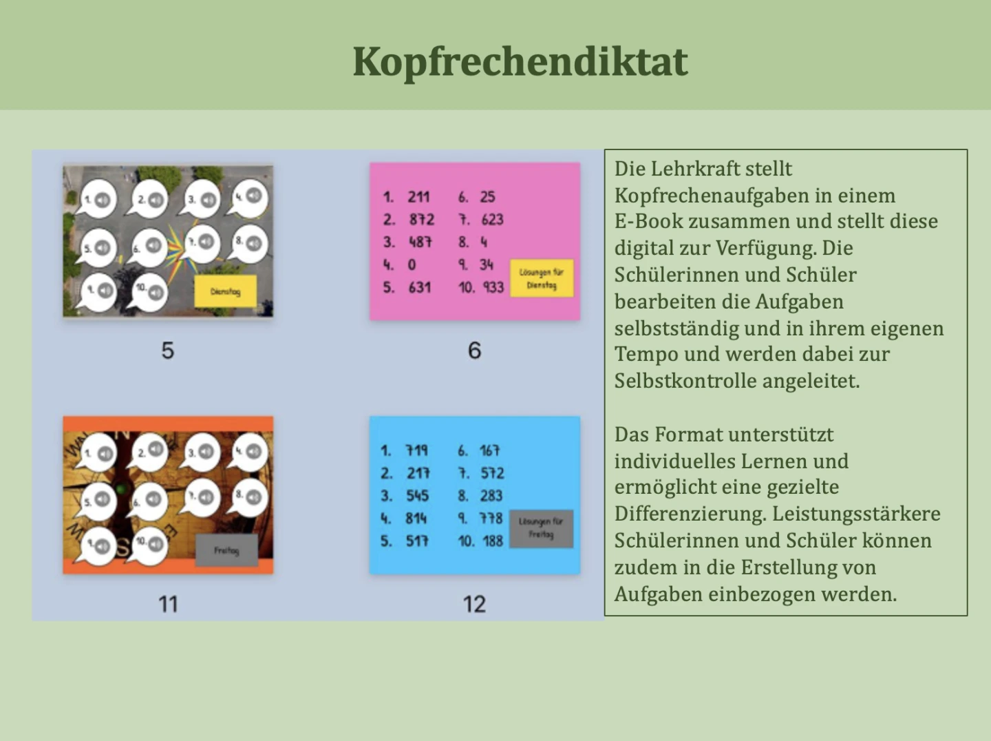 Bereitstellung eines Kopfrechendiktats als individuelle Übungsform -