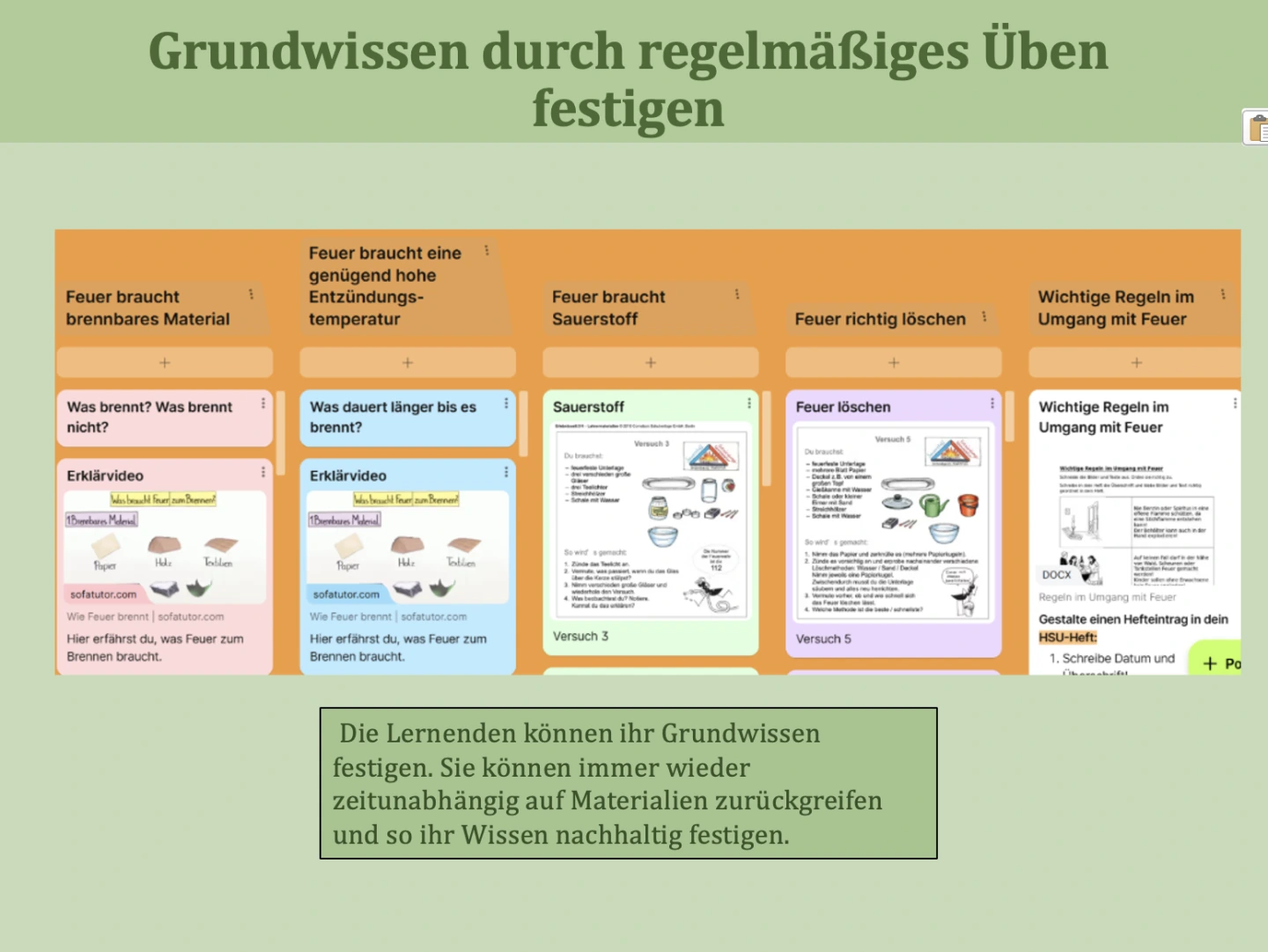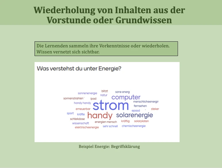 das Gelernte mit bereits vorhandenem Wissen zu vernetzen und in neuen Kontexten anzuwenden.