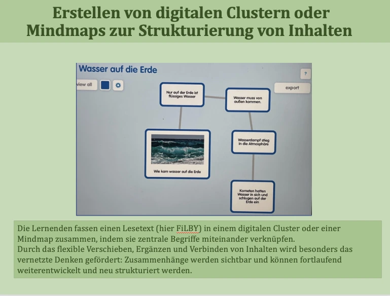 Der Vorteil digitaler Medien bei der Sicherung von Unterrichtsinhalten besteht darin, Vernetzungen und Querverbindungen zu anderen Themen oder Jahrgangsstufen einfacher herzustellen. Statt isoliertes Faktenwissen zu lernen, können Zusammenhänge besser erkannt und gefestigt werden. So können beispielsweise digitale Lernprodukte wie E-Books oder Aufgabensammlungen im Unterricht gesichert, in Folgestunden wieder aufgegriffen und weiterentwickelt werden. Dies fördert das vernetzte Denken und unterstützt die Kinder dabei, Lernen als kontinuierlichen Prozess zu erleben.