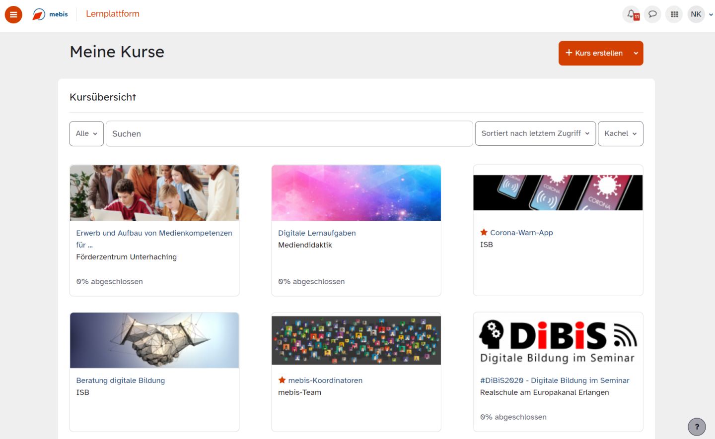 Wenn Ihre Schule bei mebis registriert ist, haben Sie als Lehrkraft die Möglichkeit, eigene Lernplattform-Kurse zu erstellen. In diese virtuellen Lernräume können Schülerinnen und Schüler sowie Kolleginnen und Kollegen eingeschrieben werden, um das eingestellte Material zu nutzen, interaktive Aufgaben zu bearbeiten, mit Ihnen oder untereinander zu kommunizieren und eigene Arbeitsergebnisse hochzuladen.