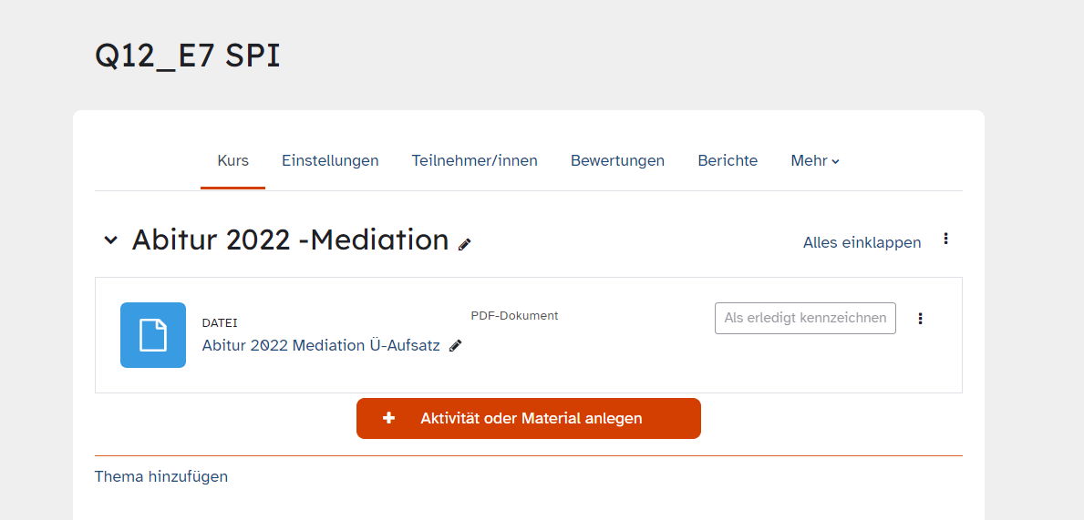 Die Lernenden können eine pdf-Datei, die an einer anderen Stelle des Kurses eingefügt wurde, öffnen und den zugewiesenen Arbeitsauftrag bearbeiten. Die Art, wie die pdf-Datei dabei geöffnet wird, hängt auch von den Einstellungen zu dem Arbeitsmaterial „Datei” ab.