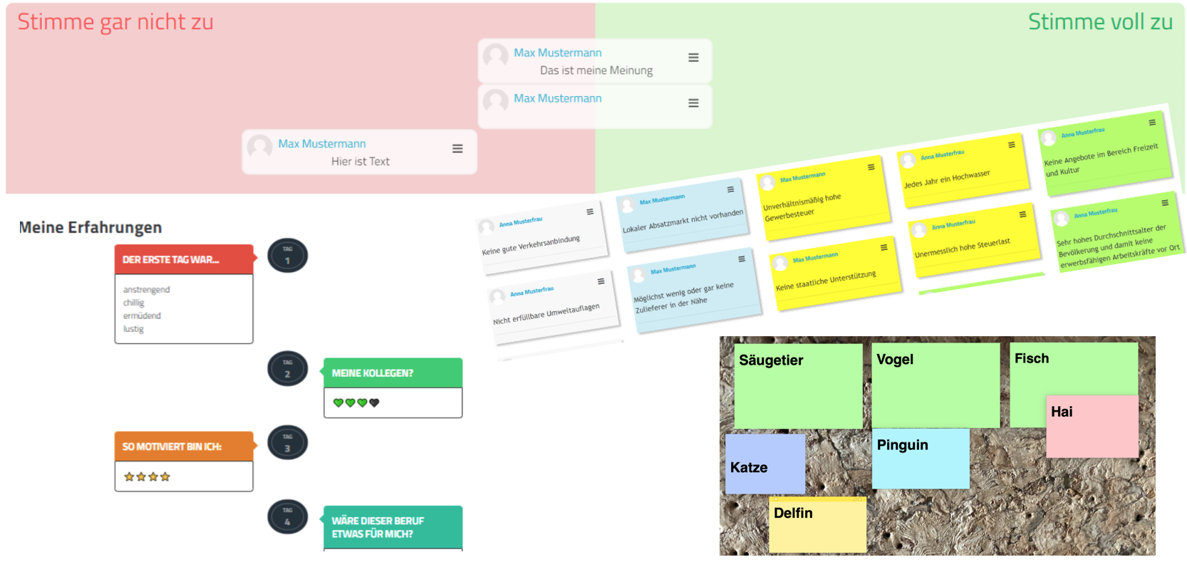 Mit einer Kartenabfrage können Ideen digital gesammelt, dargestellt und verglichen werden.