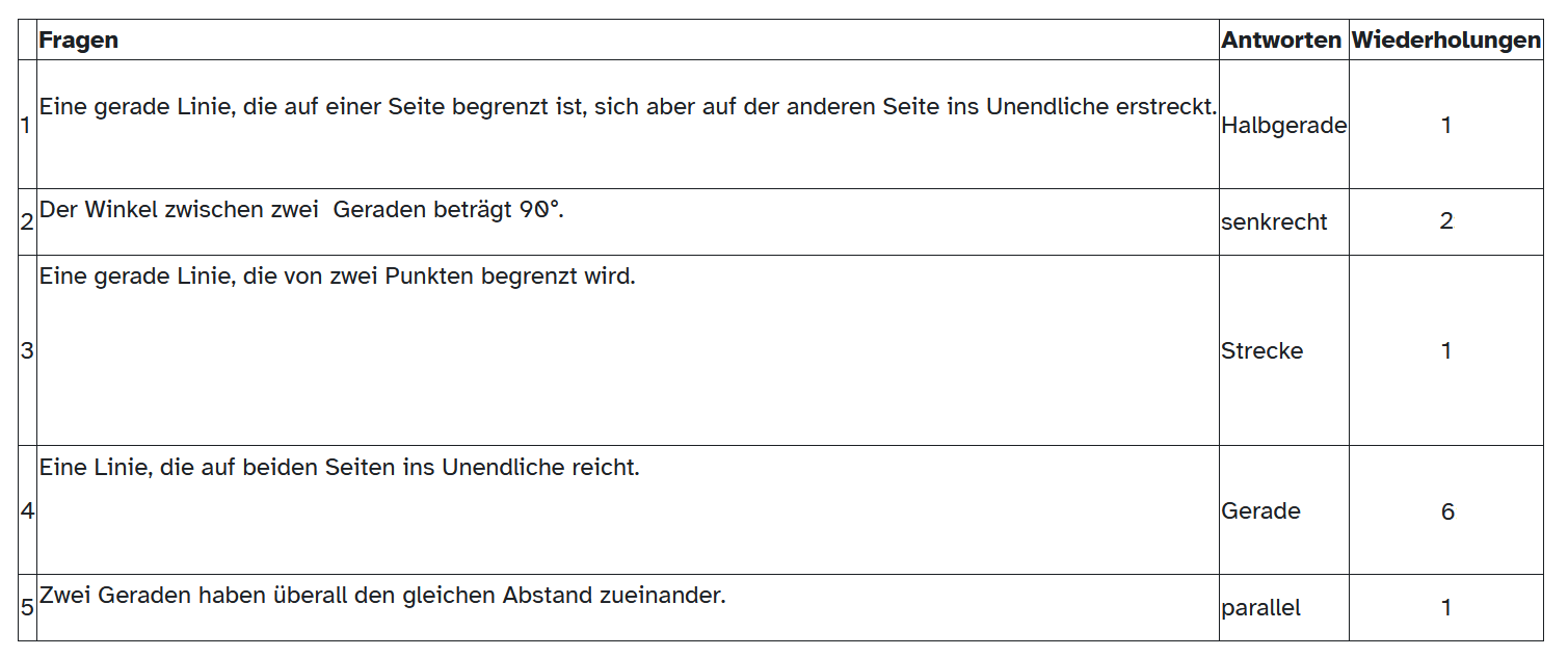 Wiederholung von Lerninhalten