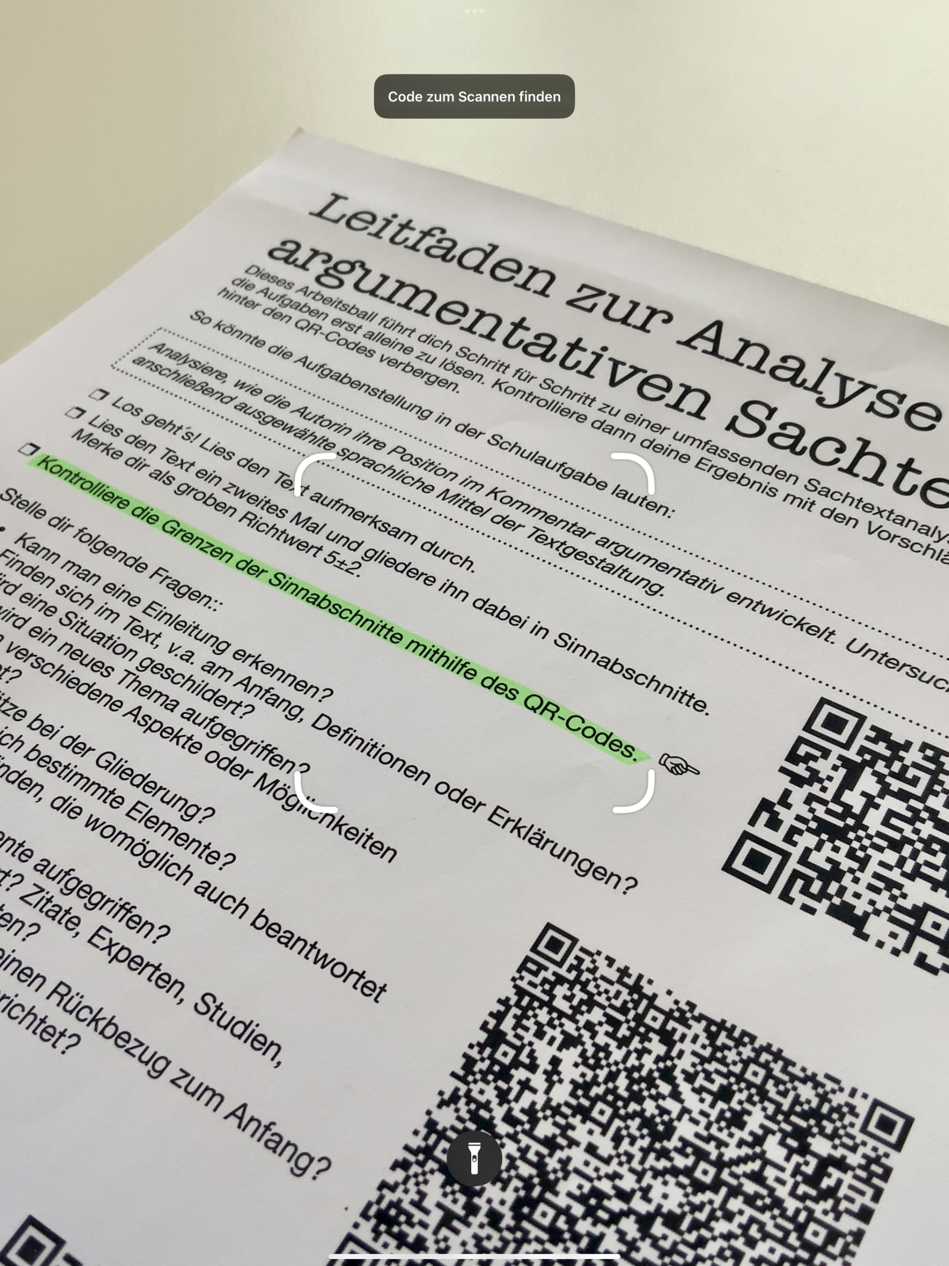 Mit der Kamera können QR-Codes gescannt werden. Diese führen z. B. zu Webseiten oder zu online bereitgestellten Dateien. QR-Codes können auch reinen Text beinhalten, der mit bloßem Auge nicht lesbar ist. So können versteckt Lösungen oder Hilfestellungen für Aufgaben bereitgestellt werden.