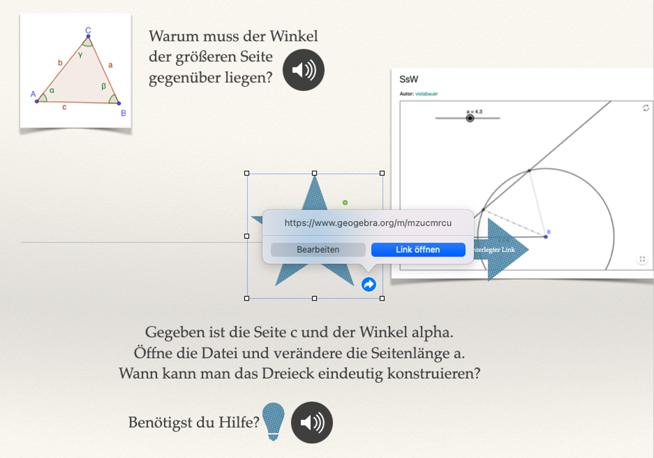 Präsentationstools ermöglichen auch die Einbettung von Links oder Arbeitsaufträgen in Form von digitalen Arbeitsmaterialien, d. h. sind die Dateien auf Online-Speichermedien/ Cloudspeichern bereitgestellt oder besteht eine Internetverbindung, so kann unmittelbar von der Präsentation aus auf Internetseiten oder digitale Arbeitsaufträge zugegriffen werden. Präsentationstools bieten dadurch die Möglichkeit, Lerninhalte in Lernumgebungen vielfältig abzubilden, wodurch Lernprozesse gesteuert werden können und Schülerinnen und Schülern somit ein individuelles und selbstständiges Lernen ermöglicht wird.
