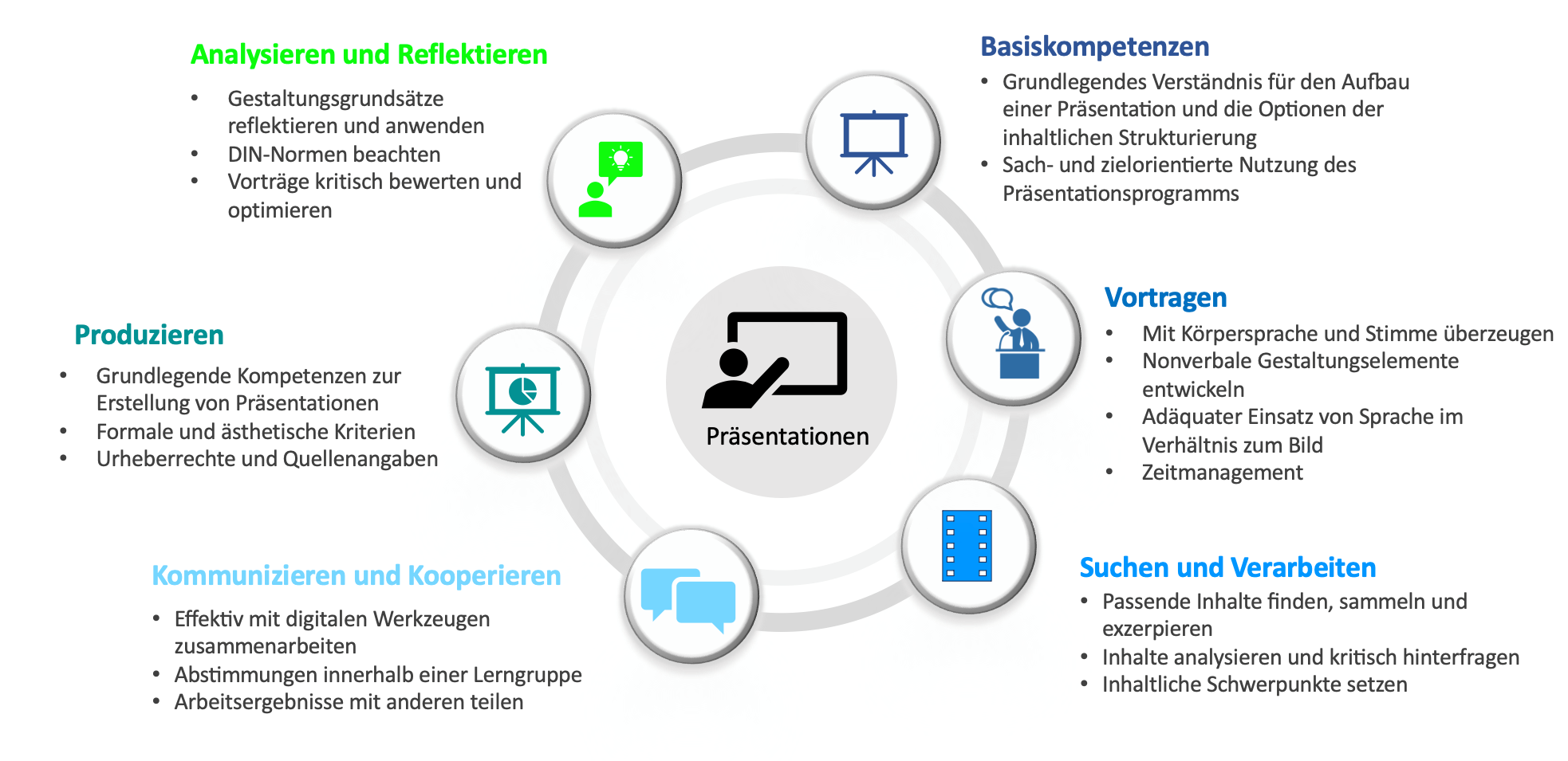 Die 1:1-Ausstattung ermöglicht einen verstärkten Einsatz von Präsentationstools, weshalb in der Folge auch Kompetenzen bei den Lernenden geschult werden können, die unter den bisherigen Voraussetzungen ohne eigene Geräte oftmals zu kurz kamen. Über das gewöhnliche Erstellen von Präsentationen hinausgehend können Lernende auch selbst dazu angeleitet werden, eigene multimediale Lernumgebungen mit Hilfe von Präsentationssoftware zu gestalten.