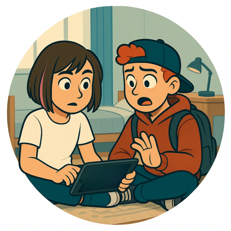🖼️ Lina und Samir spielen ein Strategiespiel auf dem Tablet. Es geht darum, eine Stadt aufzubauen und Gegner auszutricksen.