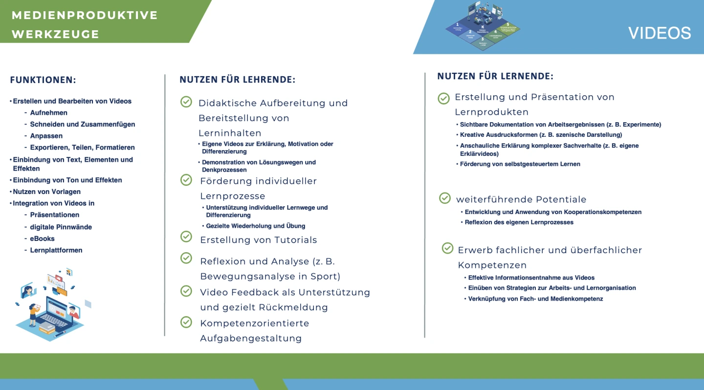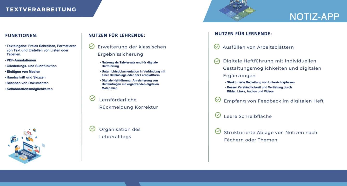 Das Bedienkonzept von Tablets ermöglicht speziell für den Tablet-Einsatz entwickelte Anwendungen (Apps). Eine passende Auswahl an Anwendungen unterstützt eine einheitliche Vorgehensweise bei der Vermittlung von Medienkompetenz, dem Lernen und der (Medien-)Erziehung. Dabei sind folgende Fragen relevant: